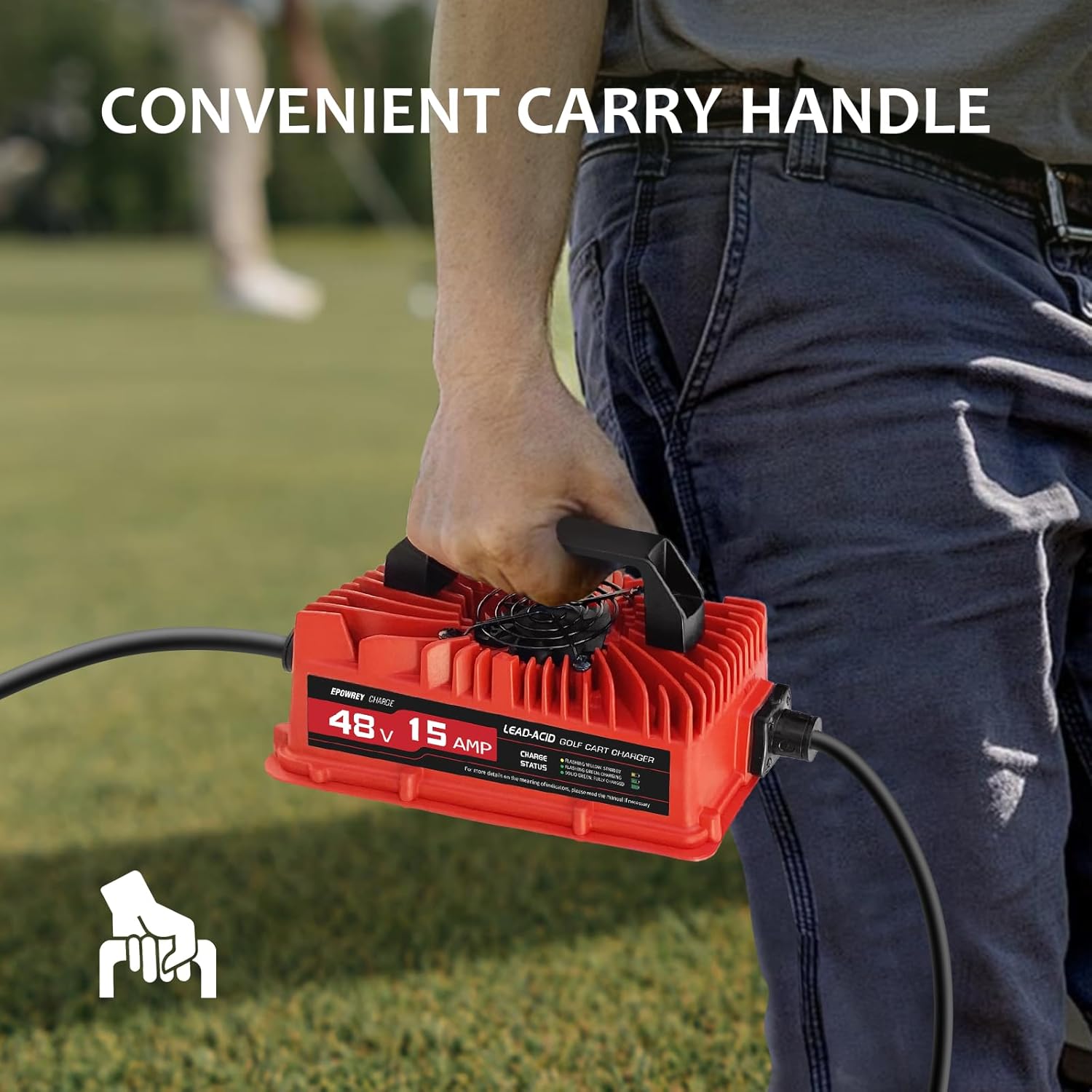 15 Amp 48 Volt Golf Cart Battery Charger for Yamaha G29 with 3-Pin Leaf Plug