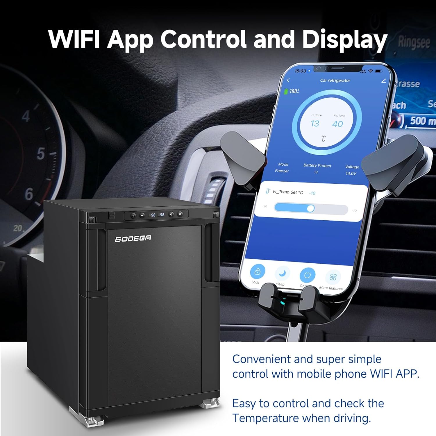 - Dual Zone & APP Control : BODEGA 12 Volt RV refrigerator supports manual control or WiFi APP control (For android & ios). Dual zones allow for both freezing and refrigeration, with the upper zone serving as the freezer and the lower zone as the refrigerator. You can check or set the temperature, voltage, cooling mode and more using the APP