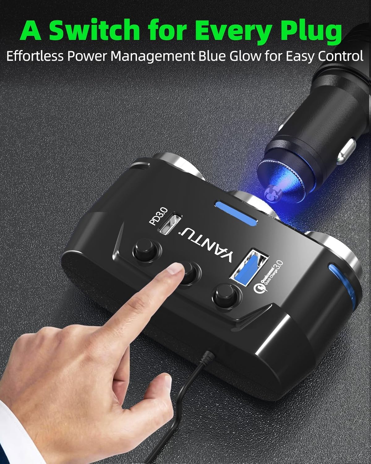 - 【Safety System & Independent Power Switches in Car Charger Adapter】 Ensure the safety of your devices with the Cigarette Lighter Adapter that features independent power switches on each socket. The Cigarette Lighter Splitter is equipped with a built-in safe fuse and smart recognition chip to prevent over-current, over-voltage, and short-circuits. Trust this reliable and secure Cigarette Lighter Adapter to keep your devices powered and protected.