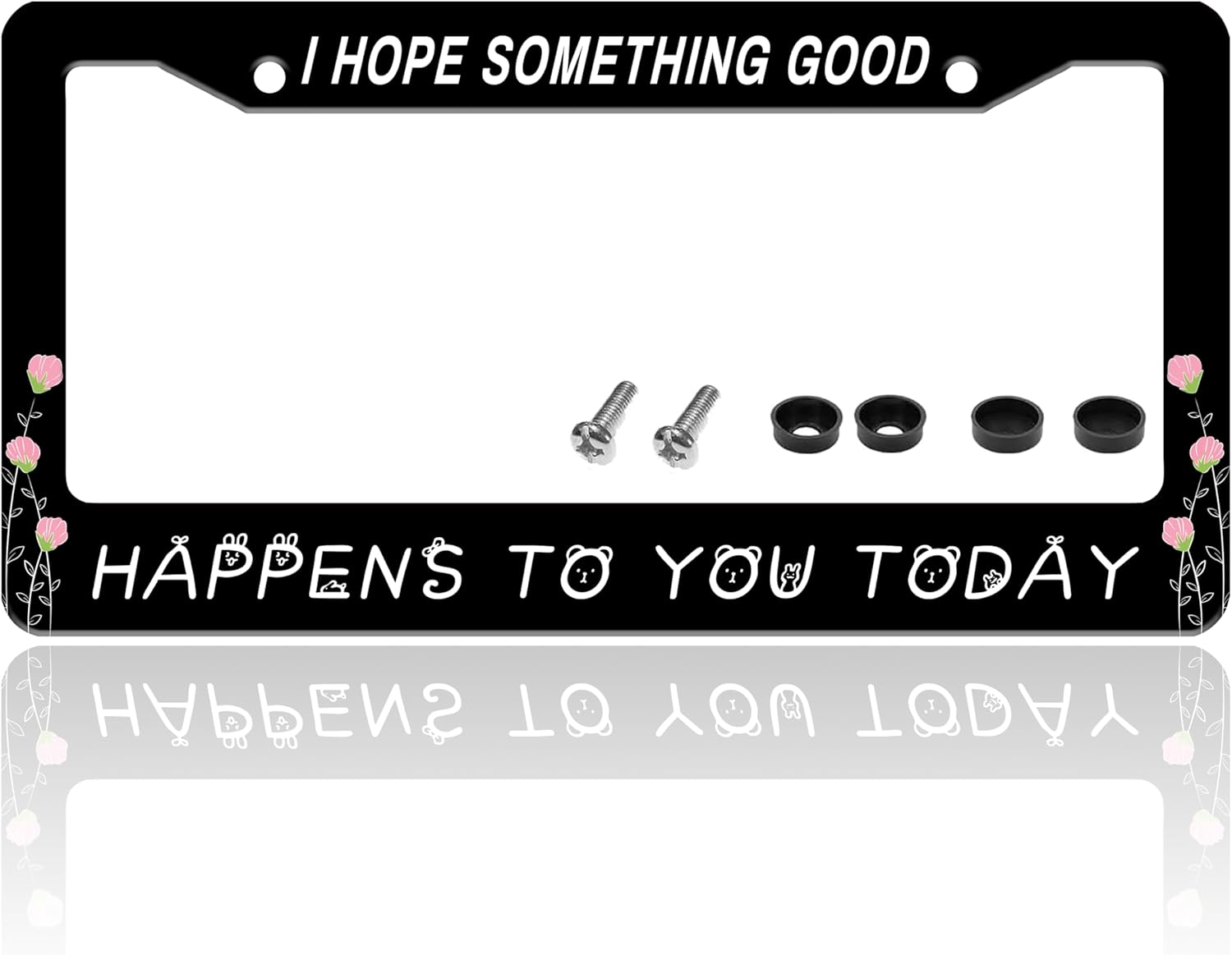 I Hope Something Good Happens to You Today License Plate Frame Funny License Plate Holder for Front or Rear Car Tags Durable Stainless Steel Car Decoration with Screws 6.3 X 12.2 Inch for Men Women