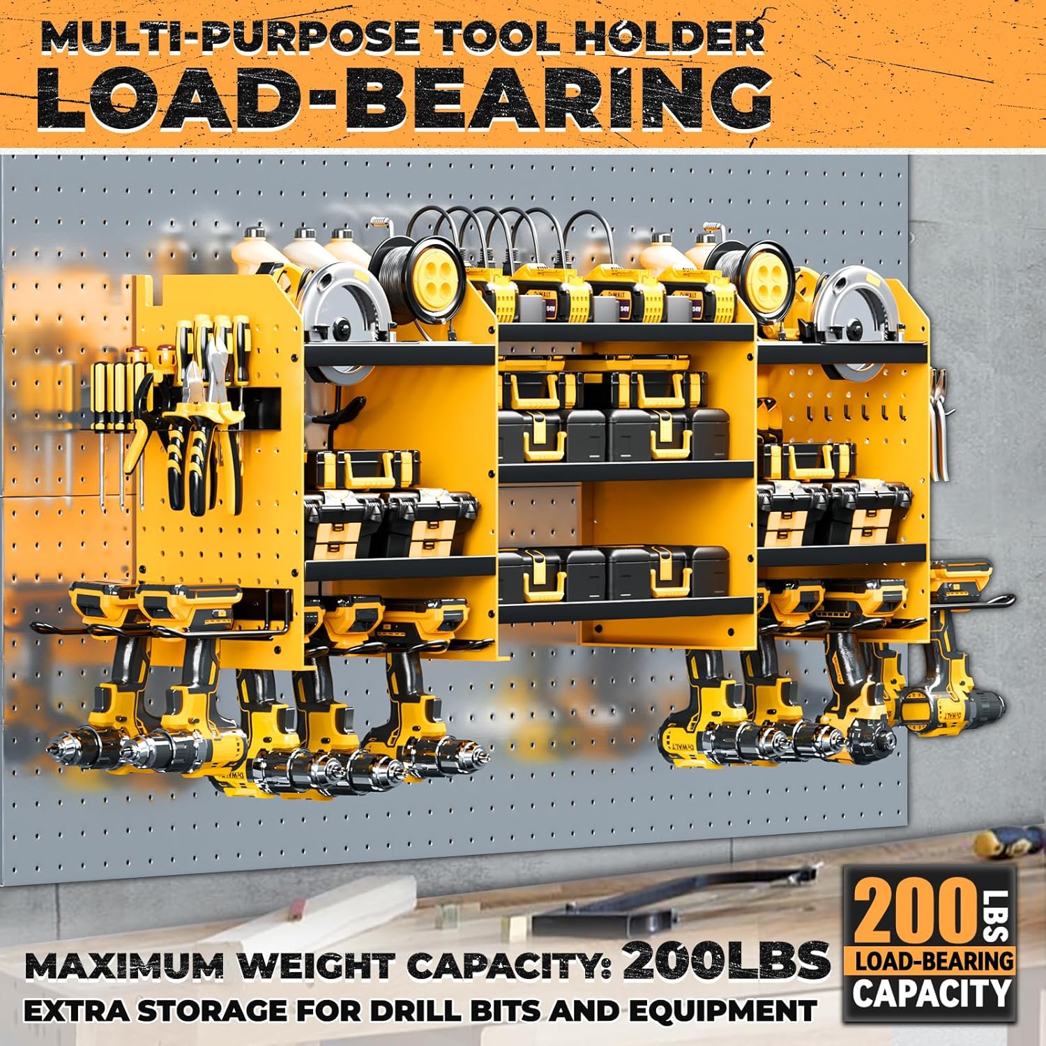 - [Perfect Garage Companion]Utilizing wall-mounted installation, this power tool rack maximizes unused wall space, saving time in tool retrieval. Ideal for garages, homes, workshops, sheds, backyard shops, and more, it offers efficient suspended tool organization and storage.