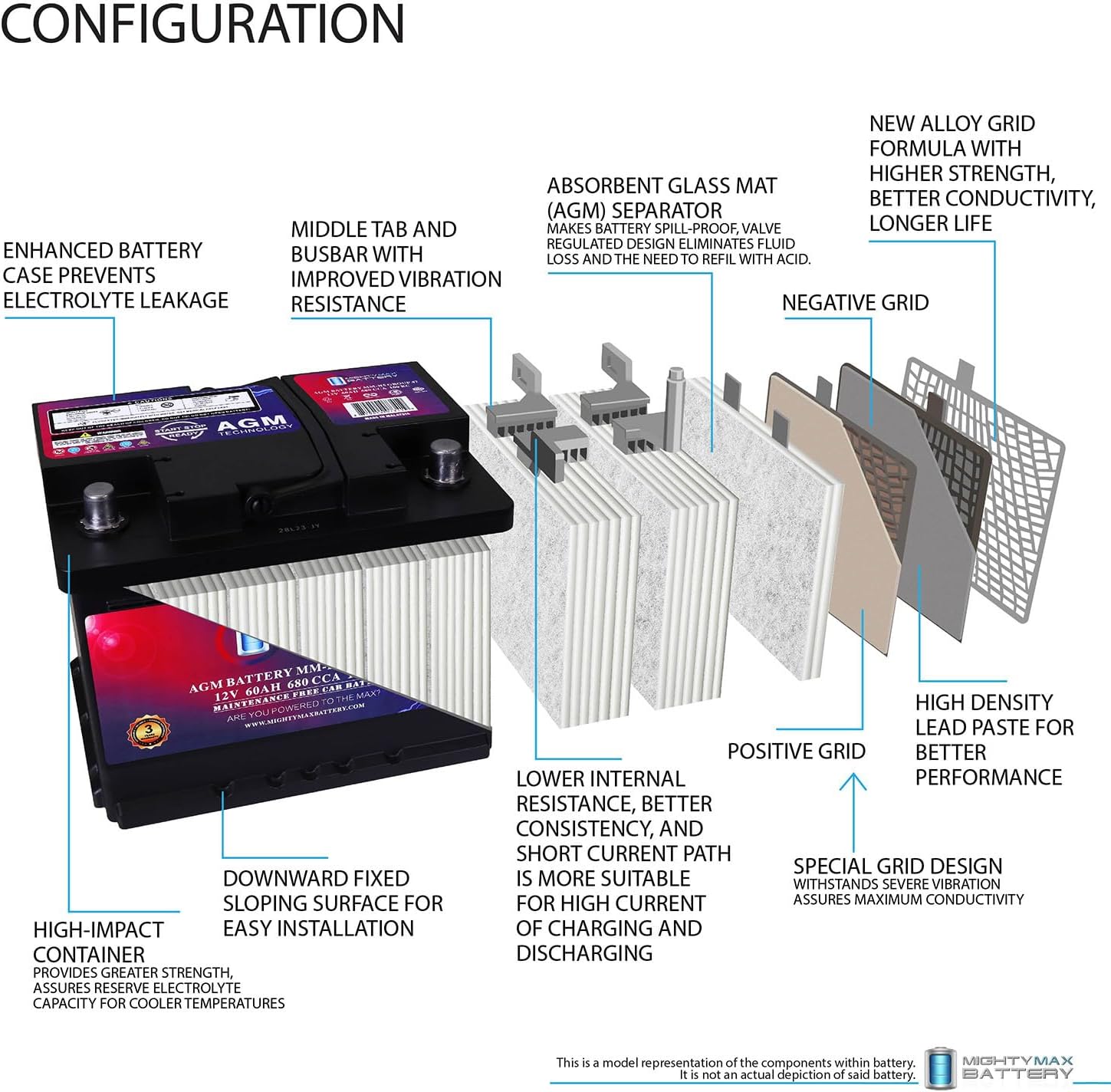 Mighty Max Battery MM-H5 Start and Stop Car BCI Group Size 47 12V 60 AH, 100RC, 680 CCA Rechargeable AGM Car Battery