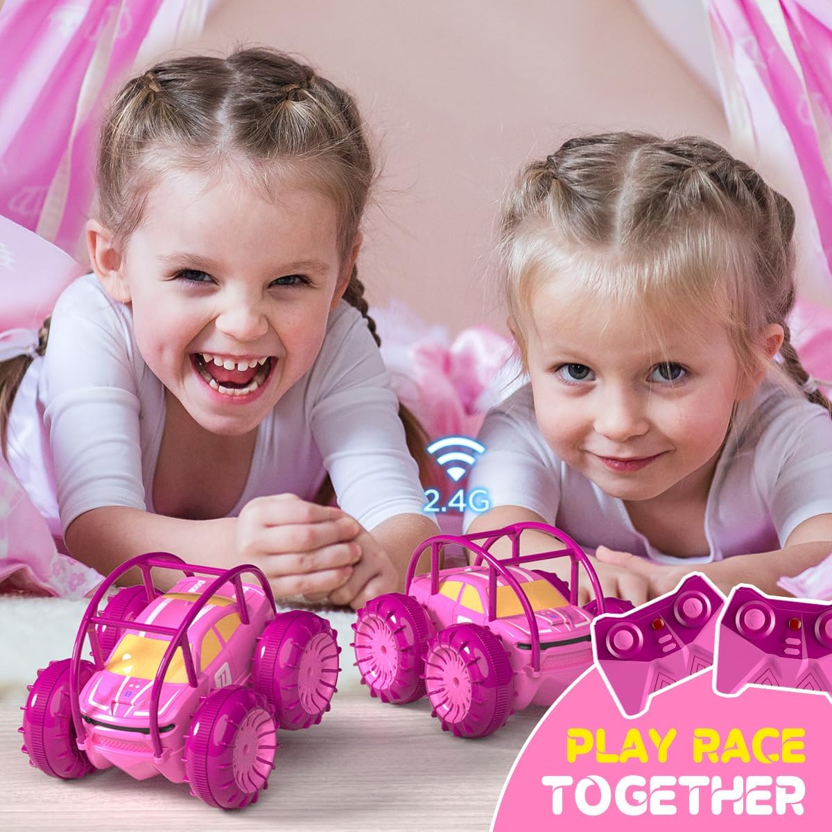 - Cool RC Stunt Car: With the unique cage, this rc stunt car can do tricks like 360° tumbling, spins and flips. You'll be impressed when it stands and does circle. So amazing! There are also two flashing lights besides the car. The lights can be turned on/off by the remote control.