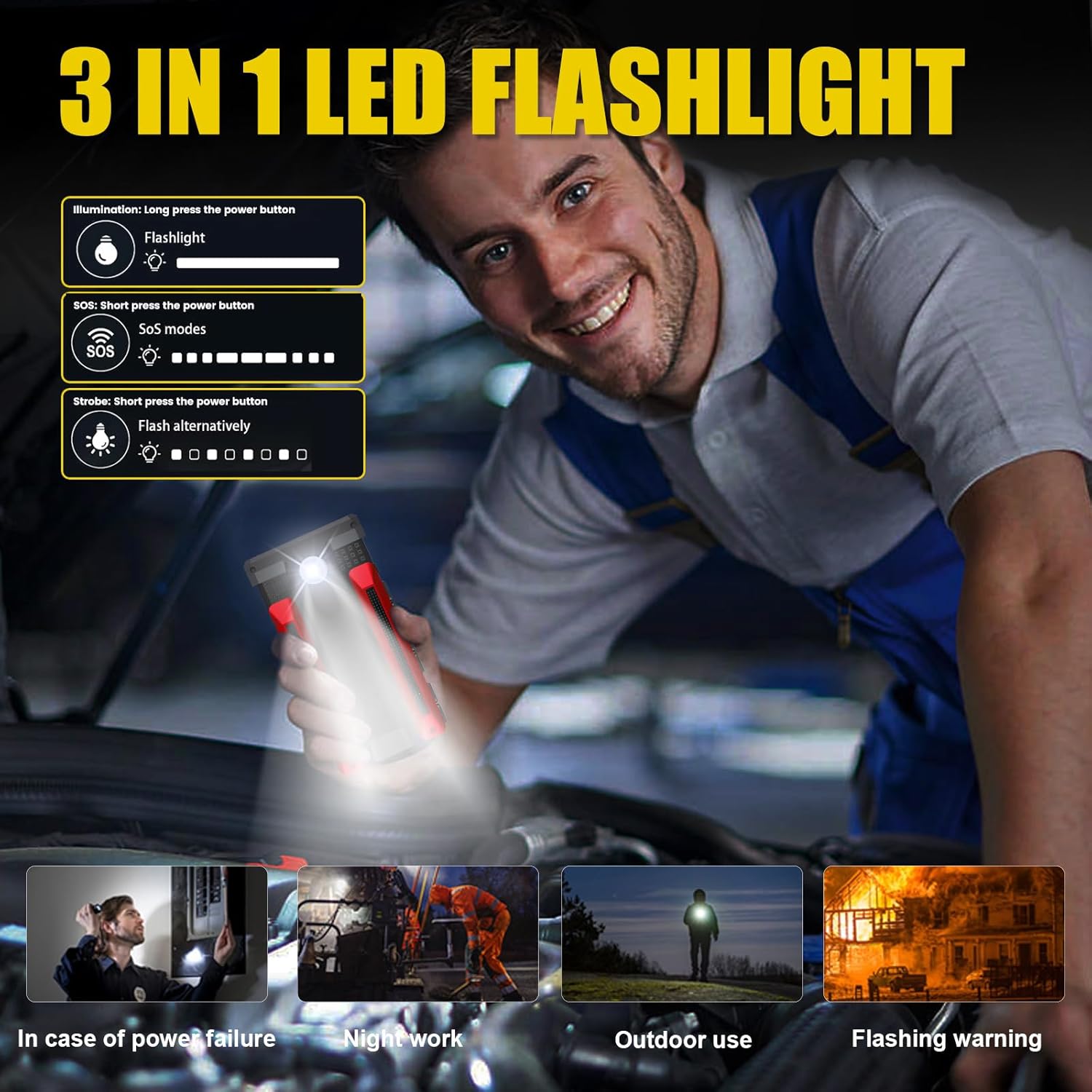 - 【More Than a Jump Starter】In addition to its jump-starting capabilities, this portable jump starter also features three flashlight illumination modes - normal, strobe, and SOS - providing emergency lighting in different scenarios. Not only does this jump starter come to the rescue when your car battery is dead, but it also doubles as a power bank. The USB port allows you to charge your mobile devices, ensuring that you stay connected even in remote locations. Compact and lightweight, the Scatach 002 Car Jump Starter is the perfect companion for any road trip or emergency situation. Don't leave home without it!