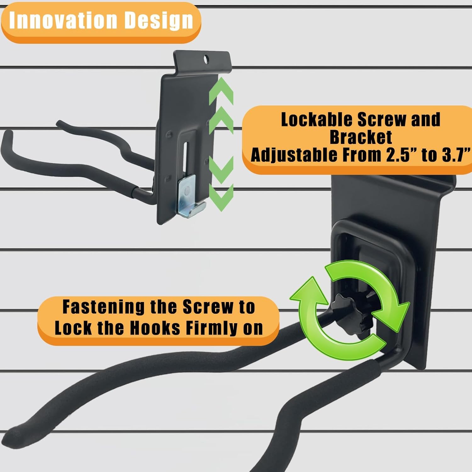 - 【Innovation Design】Juformin weed eater rack comes with an adjustable screw and bracket assembly, so that it will fit most types/sizes of slatwall by adjusting the bracket space, and provides firmer supporting by fastening the lockable screw.