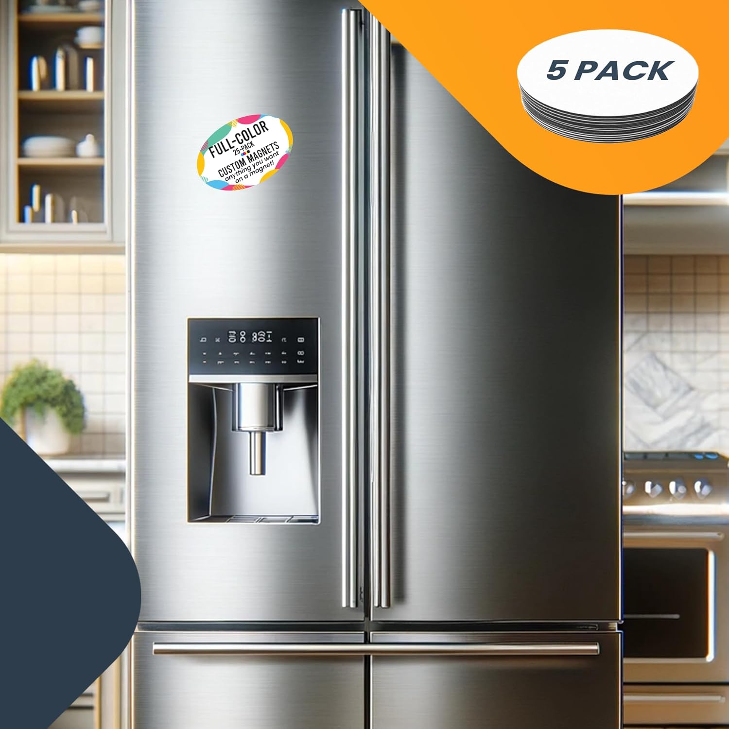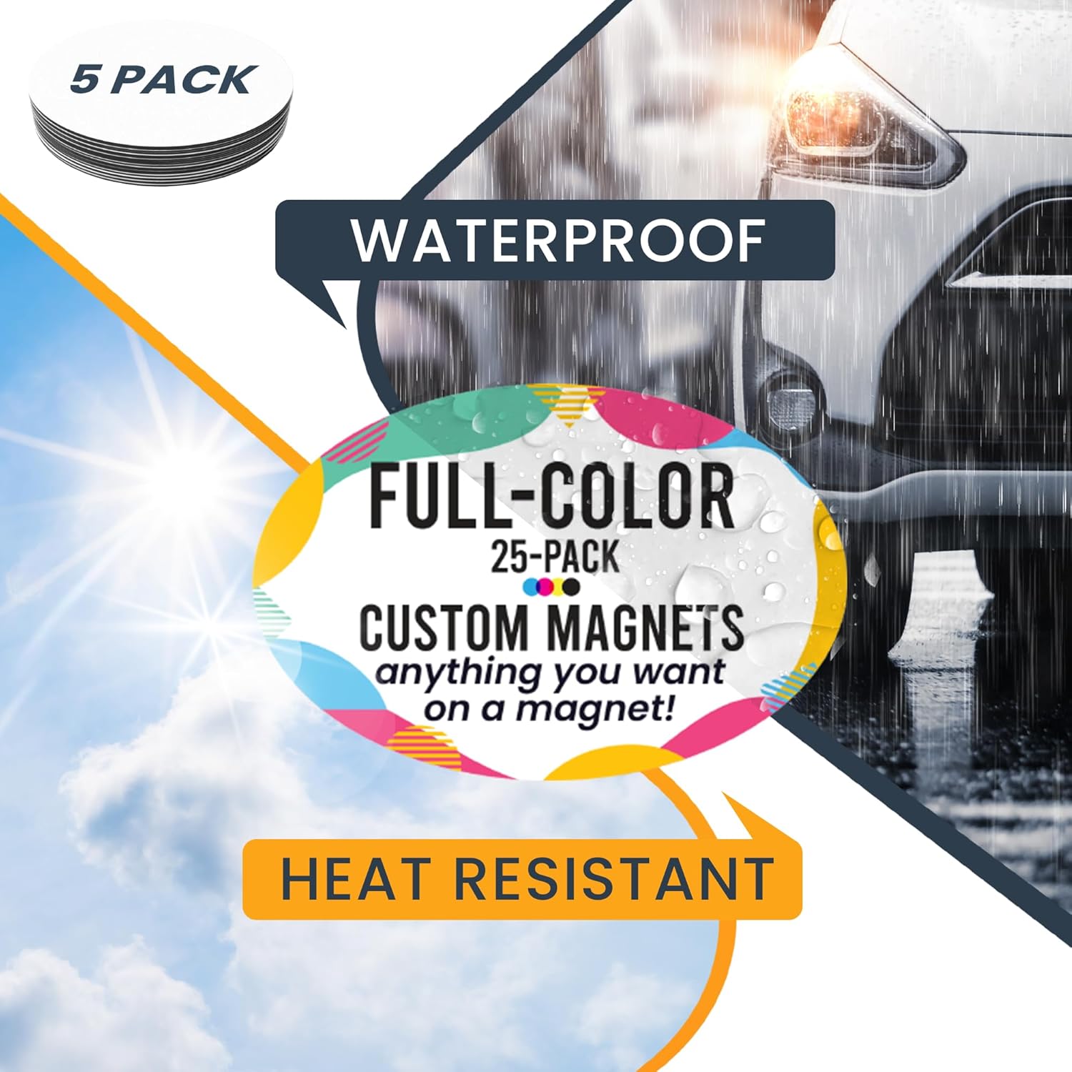 Magnet Me Up Custom 4x6 Inch Oval Magnet, 5 Pack, Customizable for Businesses, Personal Use, Choose Your Text, Upload Image, Magnetic Vinyl for Vehicles and Any Magnetic Surface, Crafted in USA