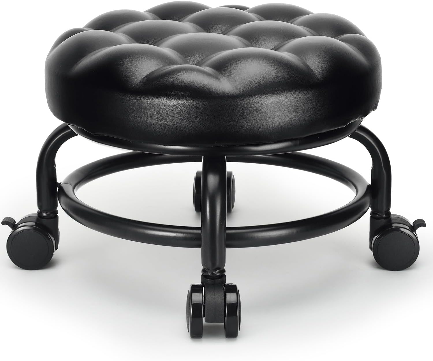 Low Height Rolling Stool Roller Stool PU Leather Comfortable Seat 360°Swivel Rotating, Modern Rolling Chair for Home Office Garage Shop