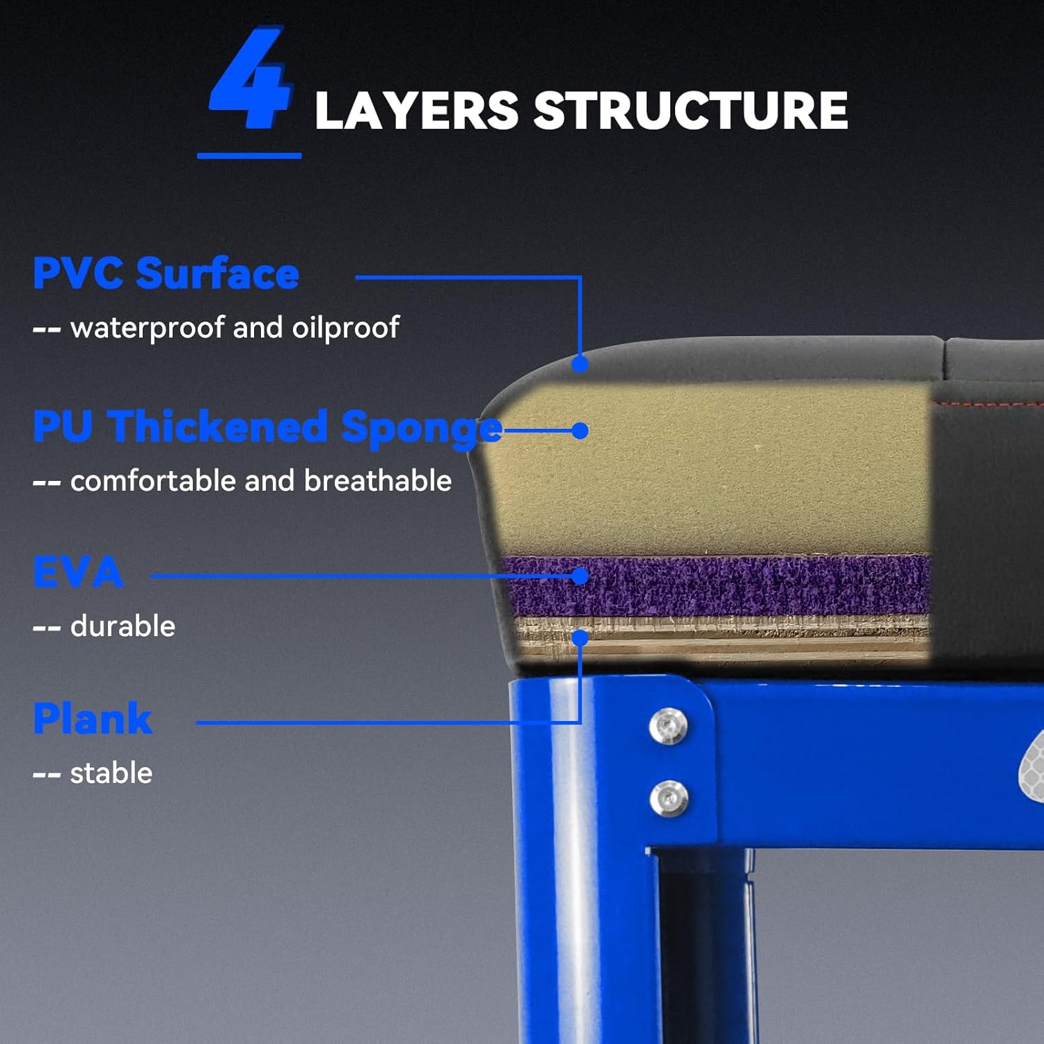 - 【4 layers Structure】The creeper seat cushion is 3.35 inches thick and consists of FOUR layers structure. The first layer is a solid wooden plank, the second layer is a durable EVA, the third layer is a comfortable and breathable PU thickened sponge, and the fourth layer is a waterproof and oilproof PVC surface. Soft, Firm, and Comfortable