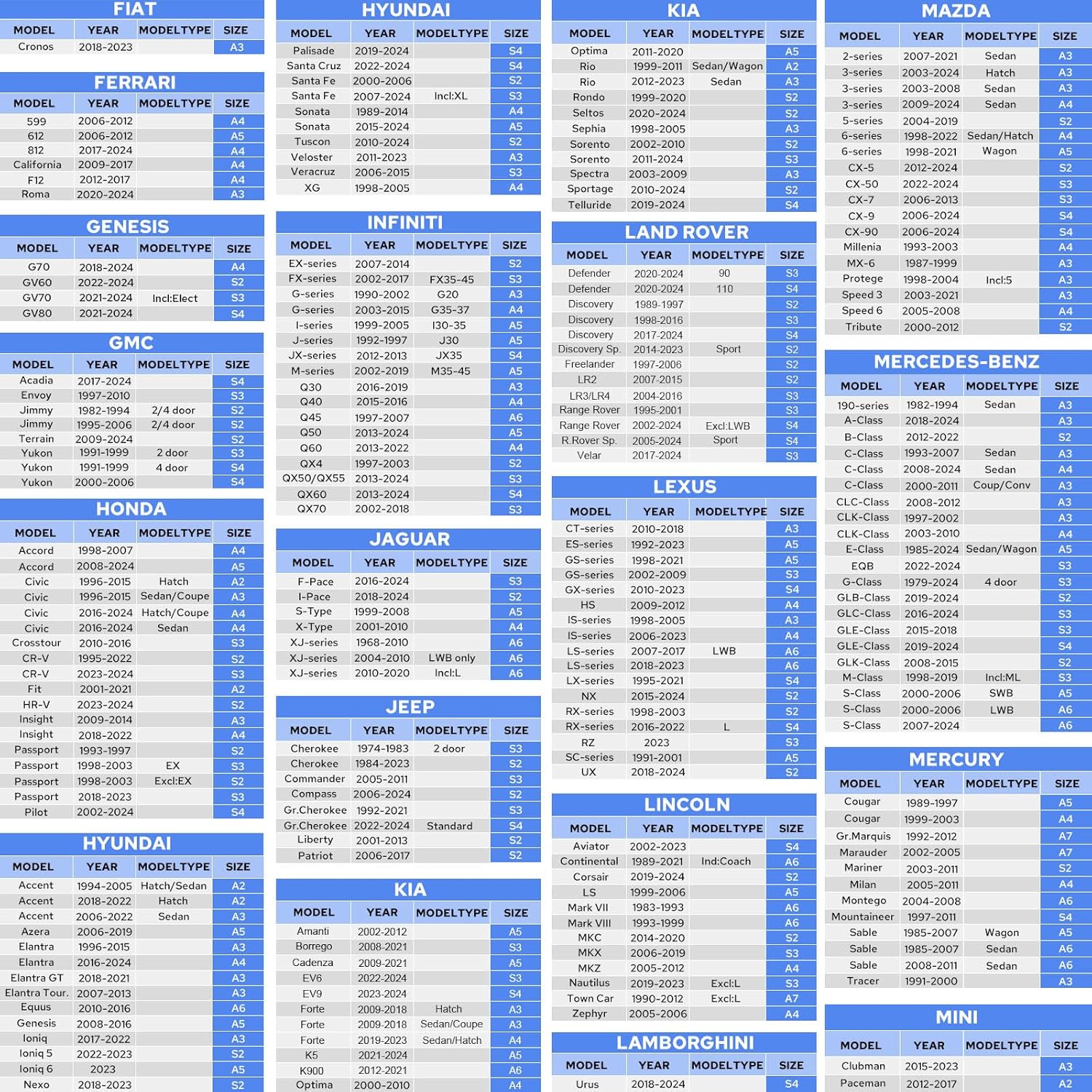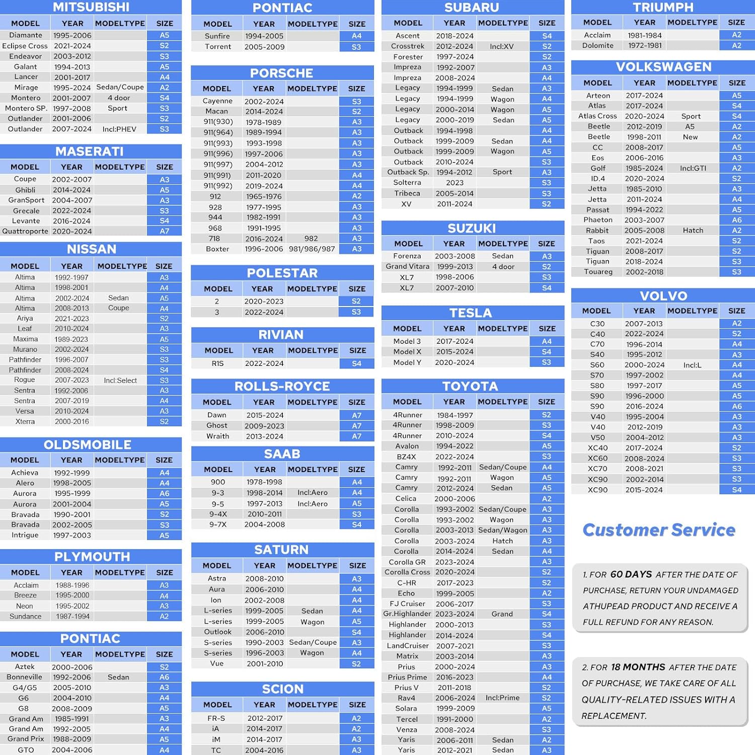 - 【How to Choose Size】ATHUPEAD waterproof car cover provides an accurate size chart (Figure 4-6), find your brand/model and year of manufacture in the size chart to match the correct size.