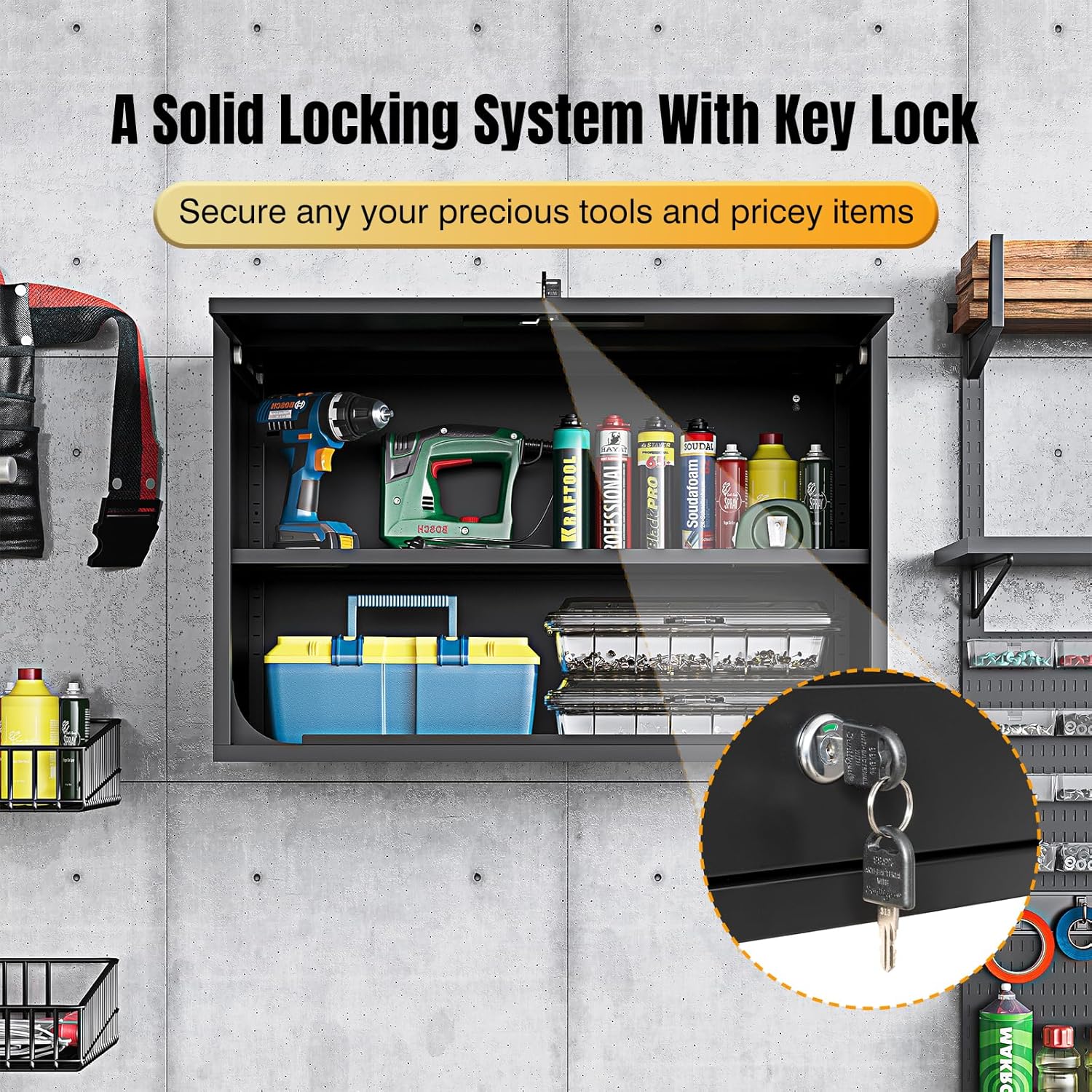 - ✅➤【A solid locking system】: This wall storage cabinet comes with a lock with 2 keys, which is a plus to secure any important and pricey items that you are storing. The lockable feature is the cherry on top, ensuring your precious tools are safe from pesky tool gnomes.