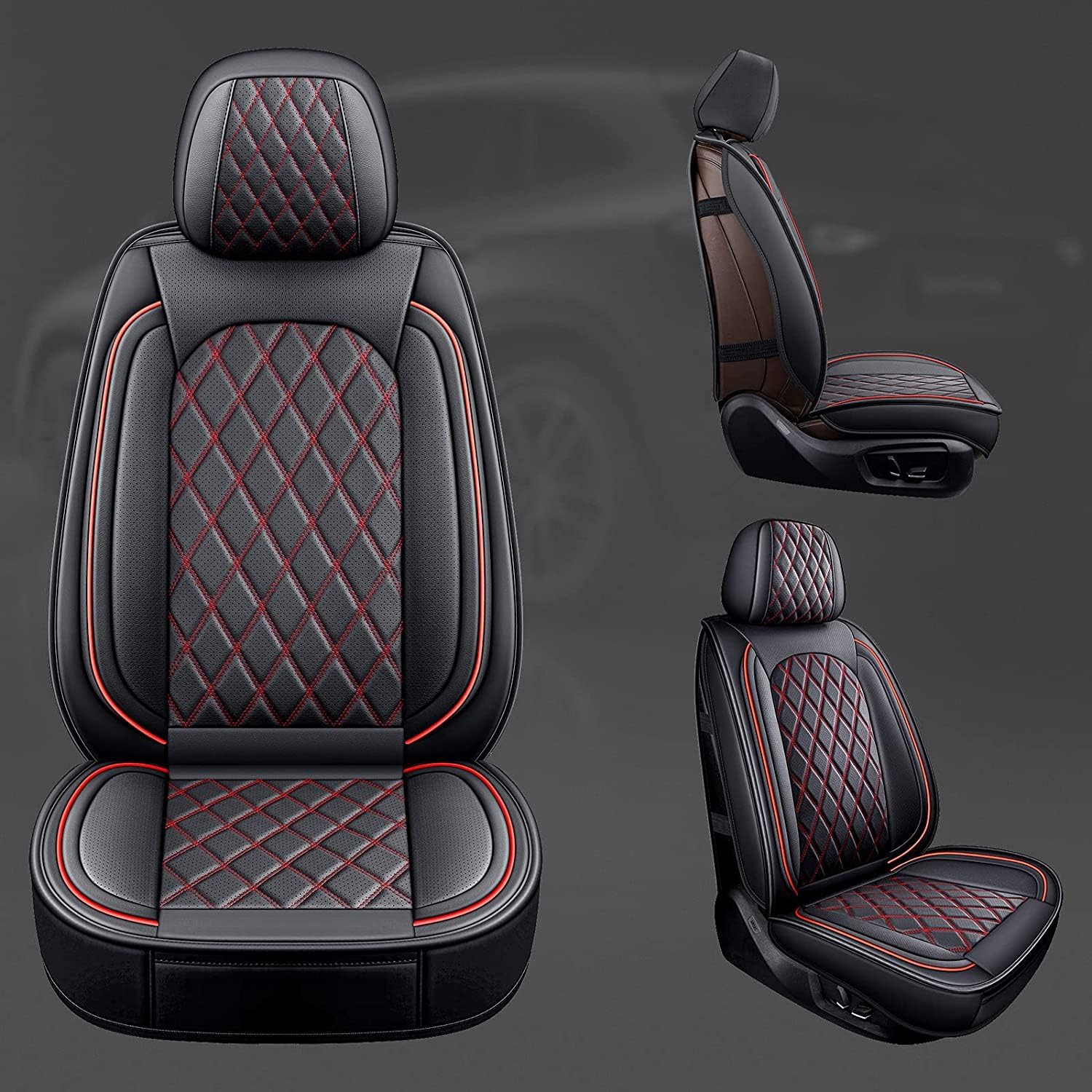MIROZO Front Ram Seat Covers,2PCS Leather Dodge Ram Seat Covers Compatible with 2009-2025 RAM 1500 2500 3500 Truck Pickup Crew Quad Cab (2PCS Front,Black and Red)