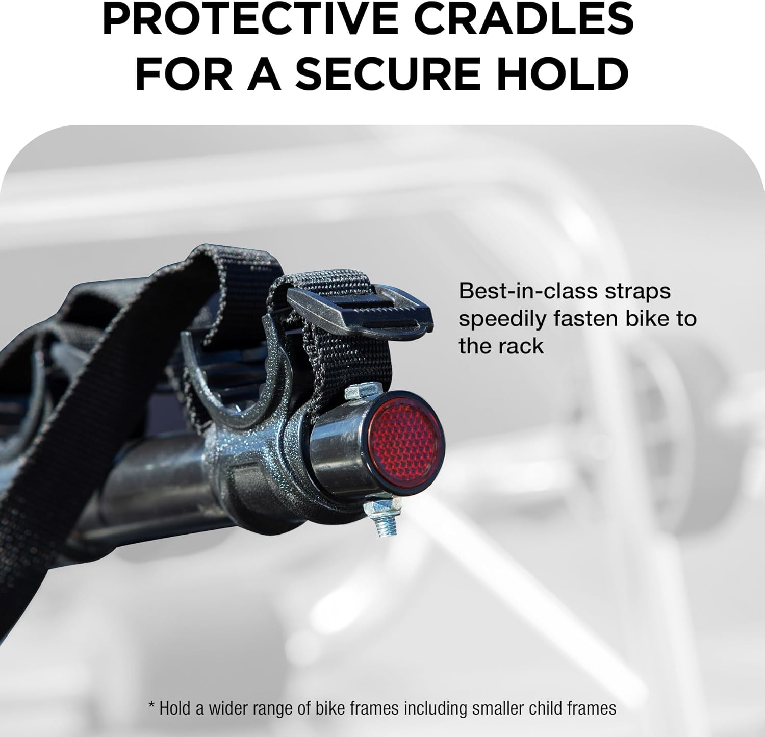 - CRADLES PROTECT BIKE FRAMES: Engineered with meticulously designed cradles, our rack provides a snug and protective fit for your bike frames, preventing scratches and dents while in transit, so your bikes arrive at their destination in pristine condition.