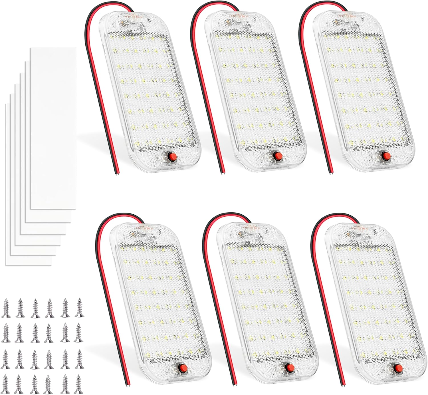 Dome Light for RV Interior, 48LED 800LM Ultra Bright 12 Volt LED White Lights, RV Ceiling Light with Switch Control, Ideal for Car Van Truck Camper Lorry Motorhome Boat(6 Pack)
