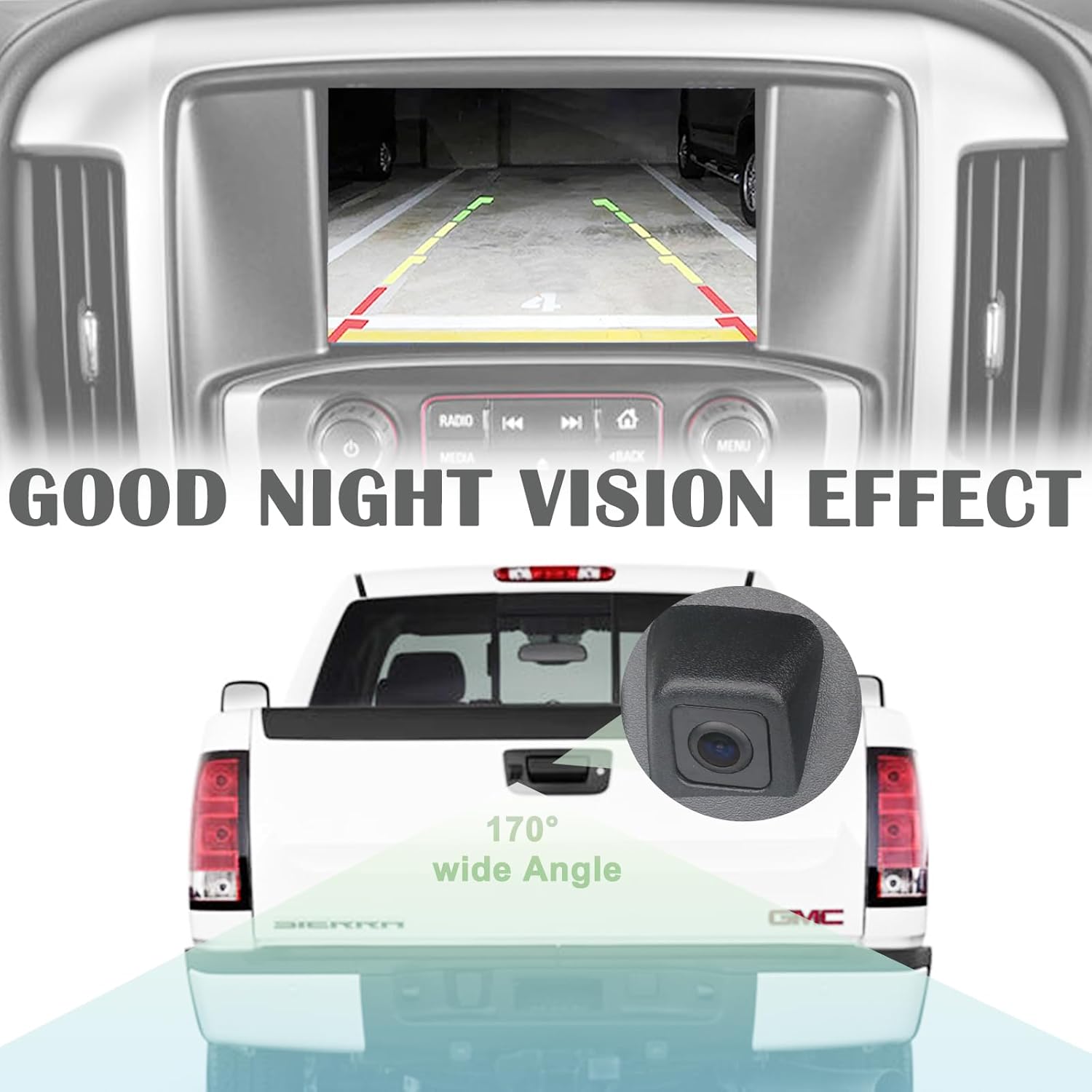 - COMPATIBLE WITH:The tailgate handle with backup camera compatible with Chevrolet Silverado 1500 2007 2008 2009 2010 2011 2012 2013,Chevy Silverado 2500 HD/3500 HD 2007 2008 2009 2010 2011 2012 2013 2014.
