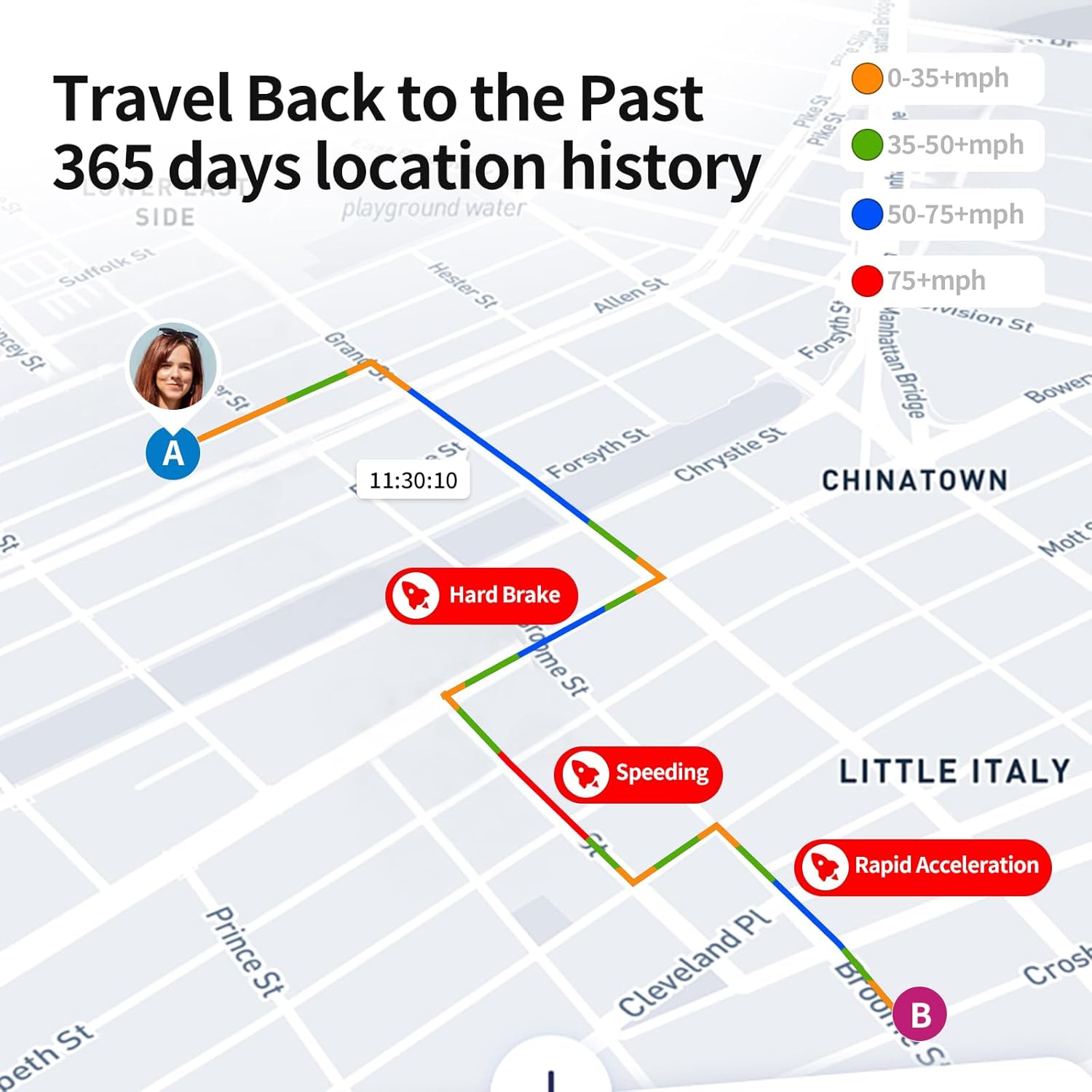 - 【10-Second Real time, No Extra Charge】The fast refresh provides fleet manager or parents with accurate and real time location. Color-coded routes show speed changes visually.