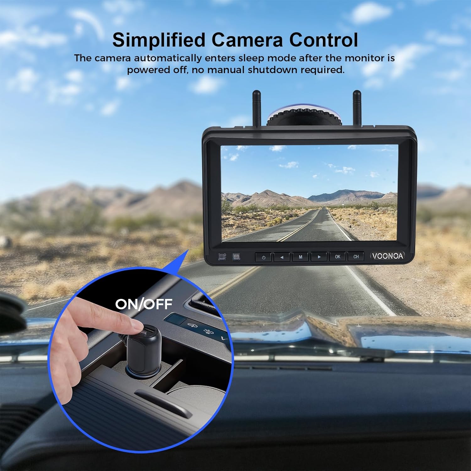 - Dual Channel: VOONOA wireless RV camera system boasts 2 backup cameras and the 1080P 7 inch HD monitor supports 2 channels to provide dual views. This allows you to monitor multiple angles at the same time, to provide comprehensive environmental vision