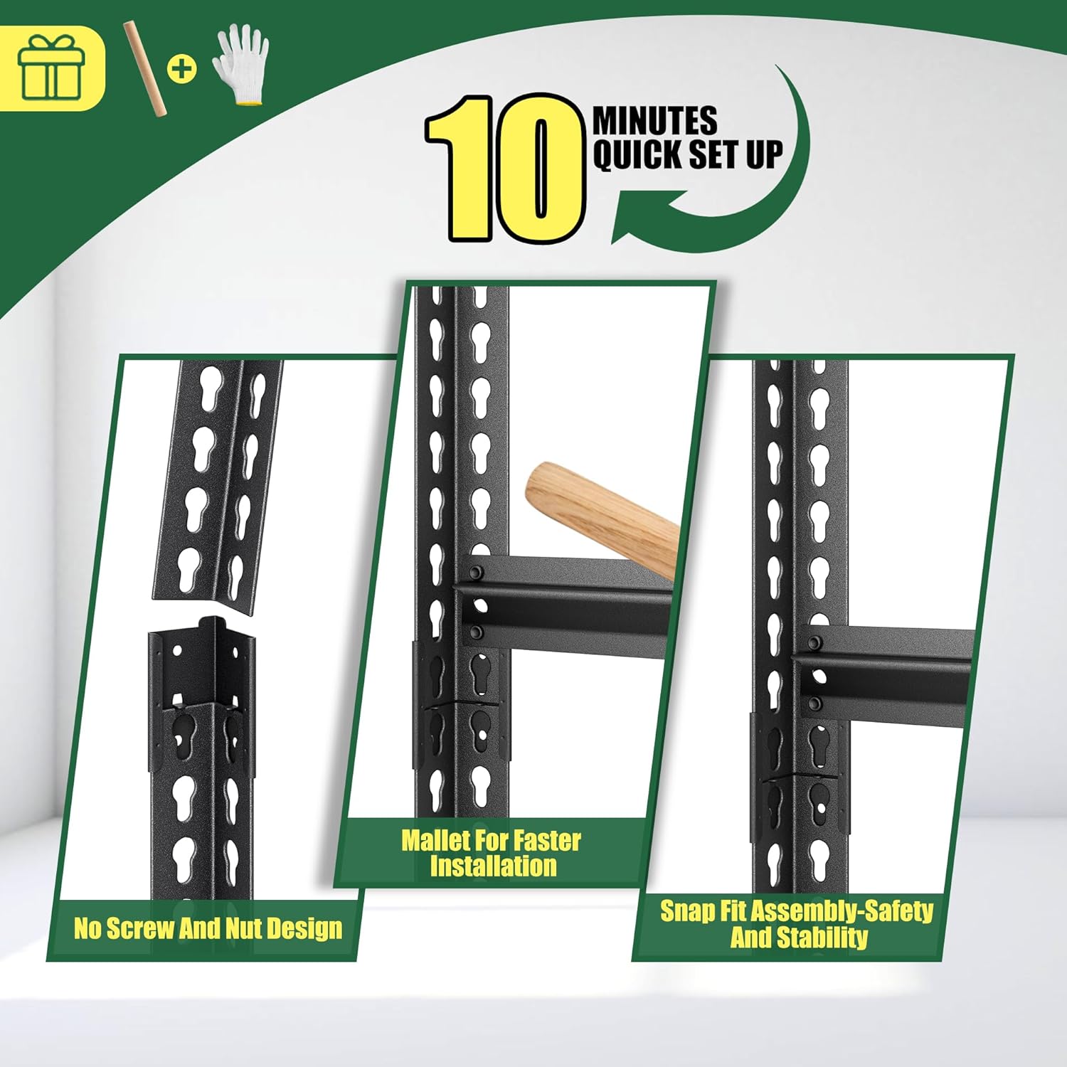 - 【Safe&Rust-Proof】The entire all-metal shelves are locked by pins to ensure crossbeams stay seated and 4 support straps to prevent twisting or spreading. The powder-coated finish on the steel uprights, support straps, and crossbeams, easy to clean, moisture-proof and rust-proof.
