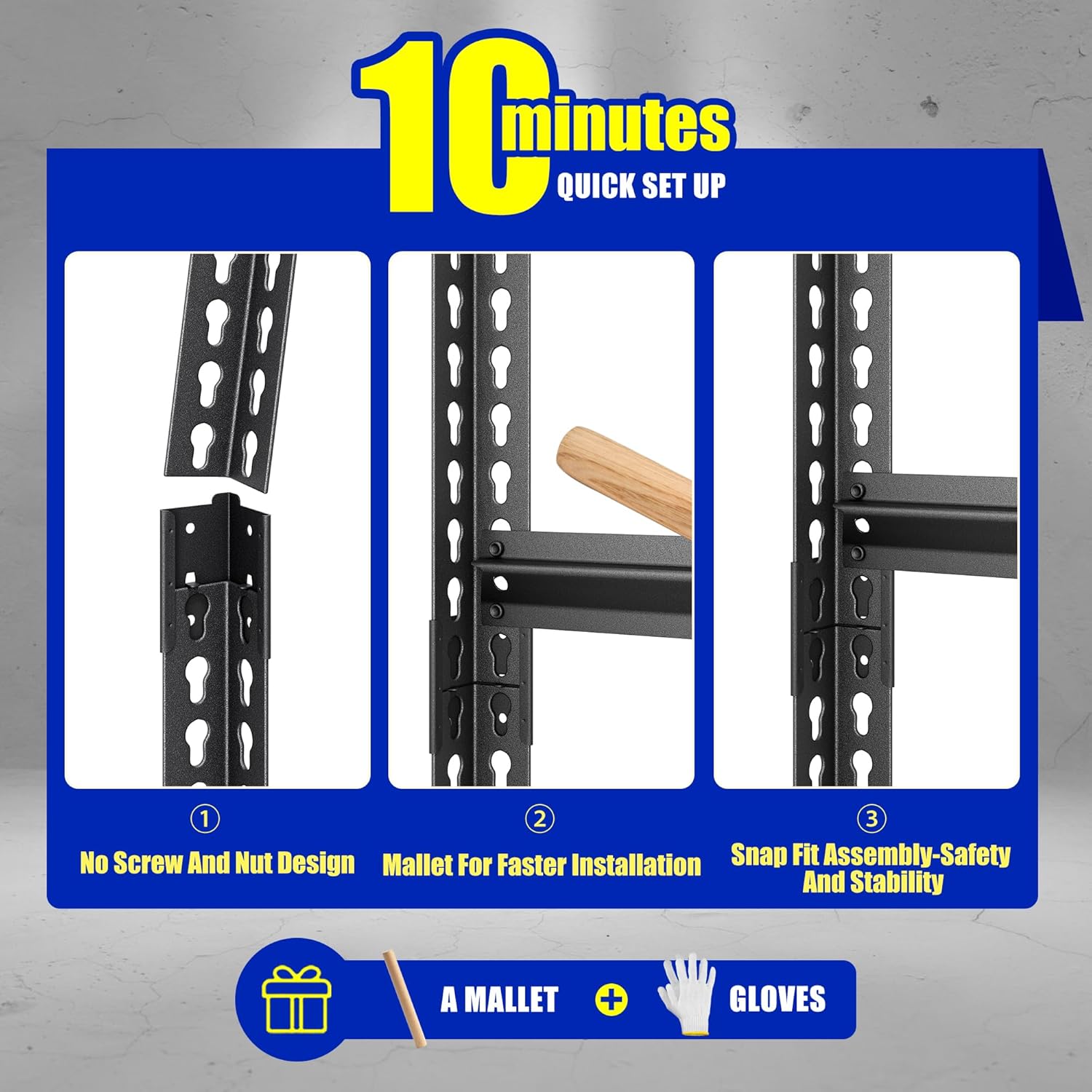 - 【Safe&Rust-Proof】The entire all-metal shelves are locked by pins to ensure crossbeams stay seated and 4 support straps to prevent twisting or spreading. The powder-coated finish on the steel uprights, support straps, and crossbeams, easy to clean, moisture-proof and rust-proof.