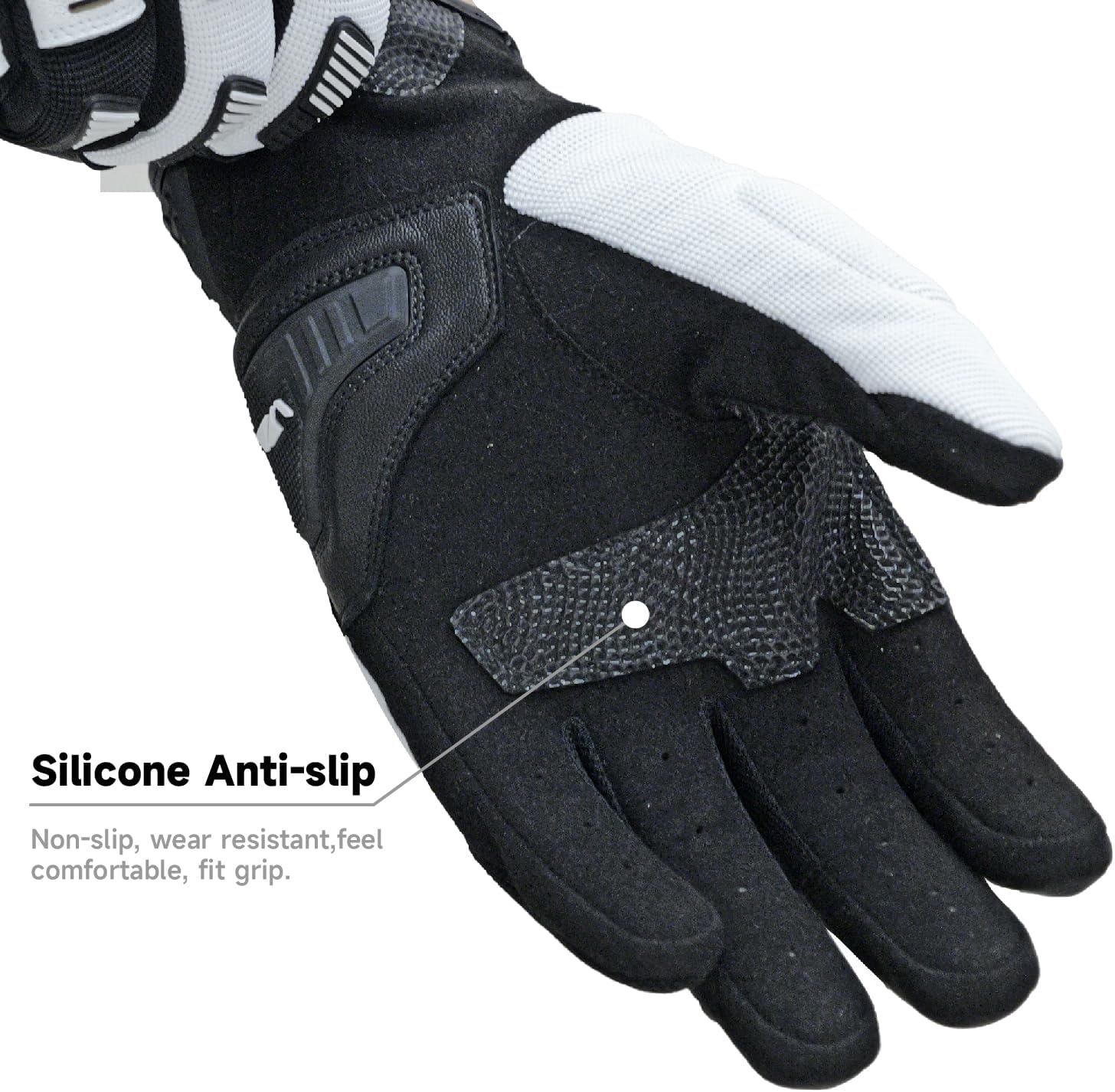 - Ultimate Safety and Comfort - VXW high protection motorcycle golves for man is made of soft and breathable suede and leather with air hole, full-body ergonomic design, super easy to take on and off. The gloves joints are equipped with ultra-hard carbon fiber protection and TPR protection to protect your knuckle, the palm of the gloves is designed with the silicone anti-slip increasing the friction when gripping.