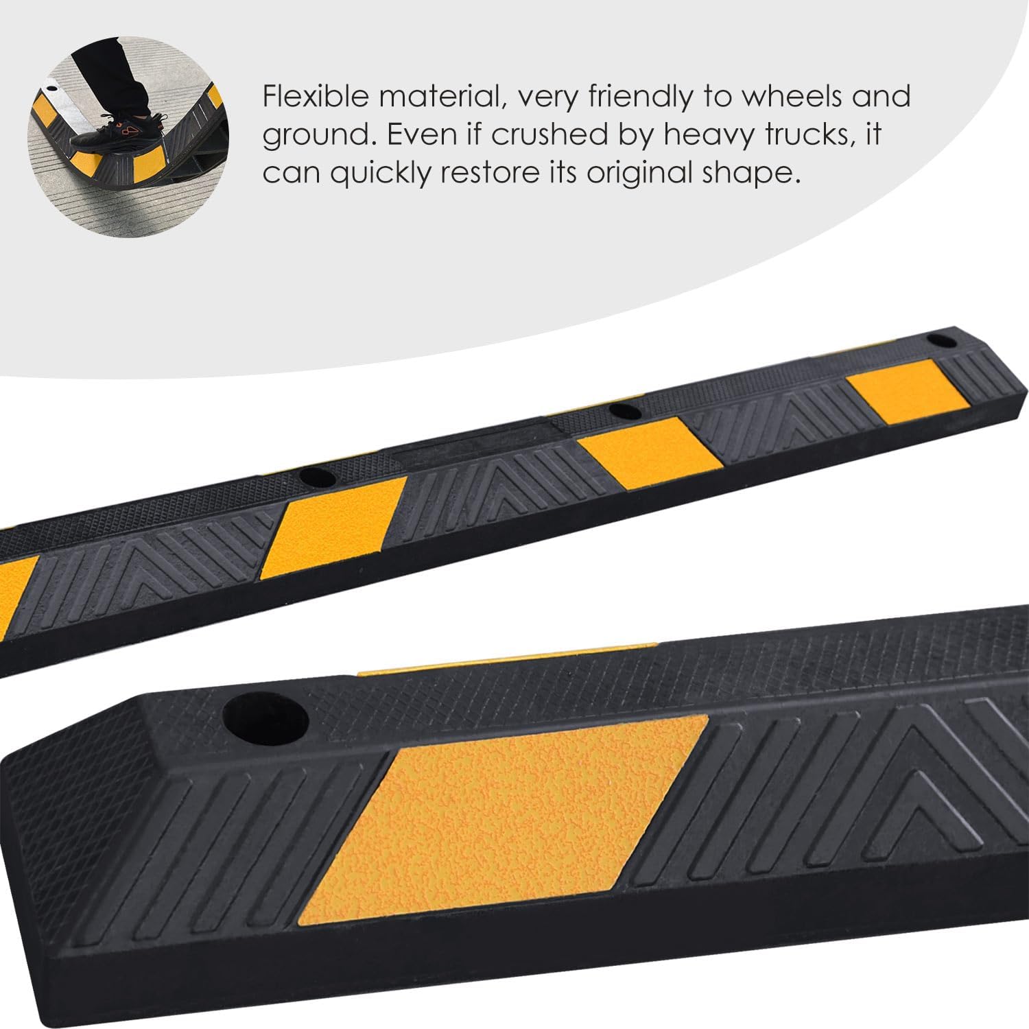 - Unique Diagonal Stripe Anti-slip Surface ------ This product can withstand the impact of vehicles from different angles, safely and steadily block the wheels from moving forward.