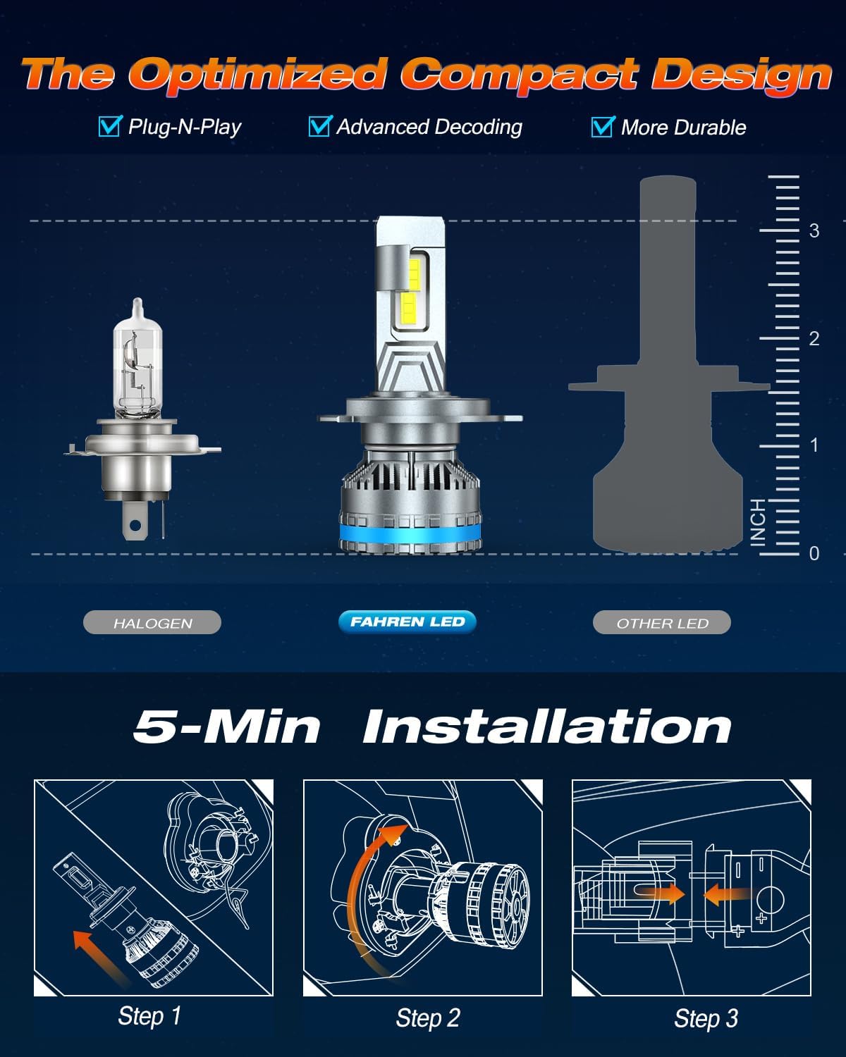 - Quick 10-minute Installation: This H11 Designed to be almost identical to factory halogen bulbs for a plug-and-play experience, includes an additional decoder for better performance.