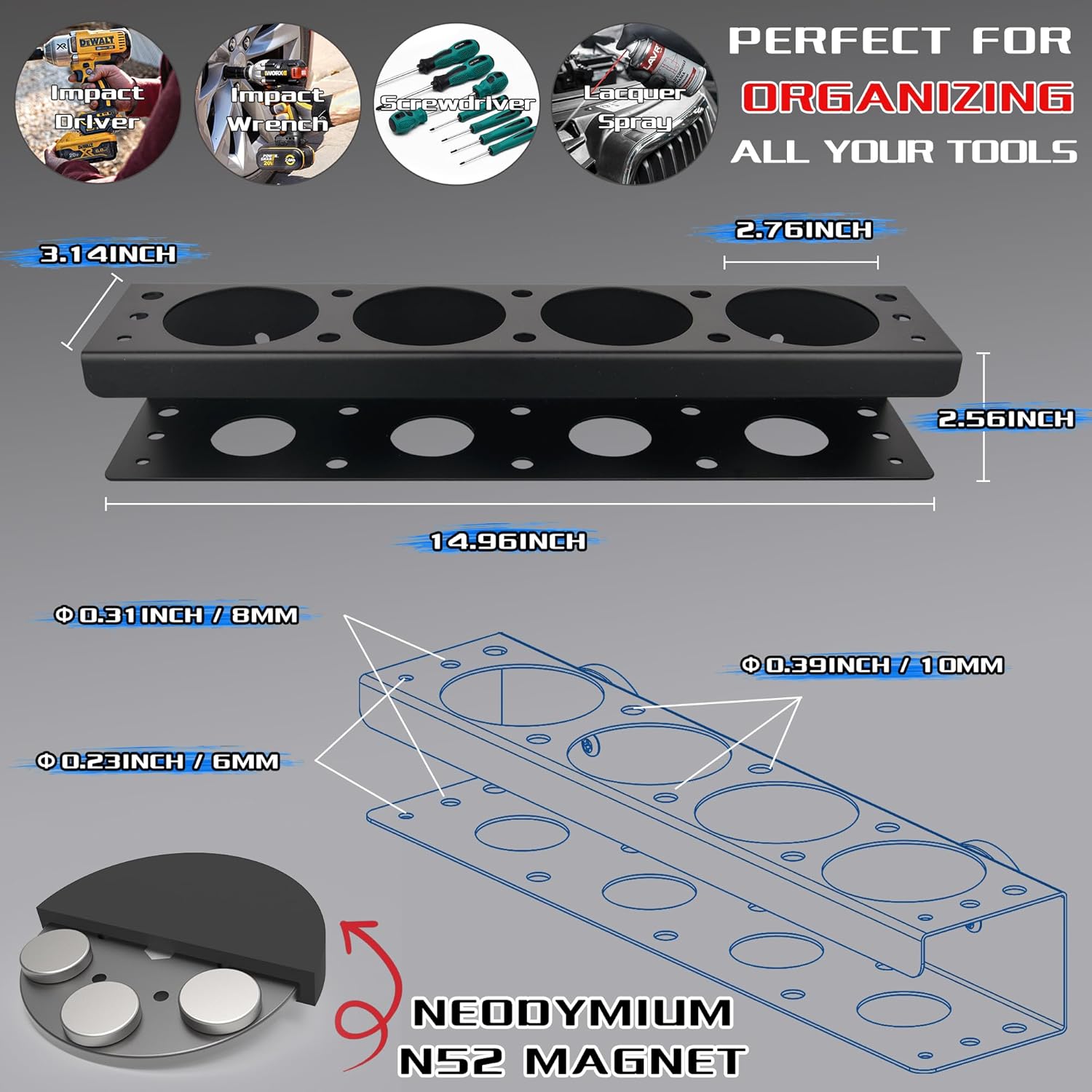 - [Magnetic Power Tool Organizer]: Can store cordless drills screwdriver and other heavy tools.Use the magnetic tool organizer to help you store all the commonly used tools, keeps your workbench at a glance and saves you time looking for tools