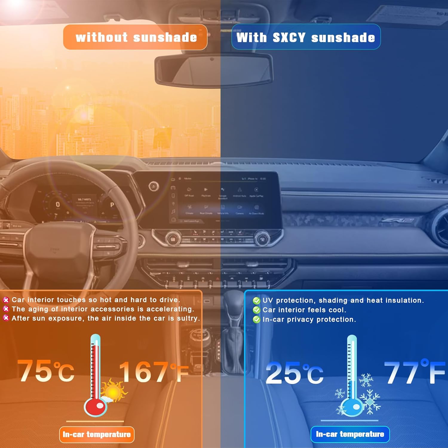 SXCY for 2023 2024 Chevy Colorado/GMC Canyon Windshield Sunshade 2023 2024 Colorado Z71 ZR2 LT WT Trail BOSS Accessories 2024 Colorado/Canyon Sun Shade Foldable Sun Shield 2024 Colorado Sun Protector