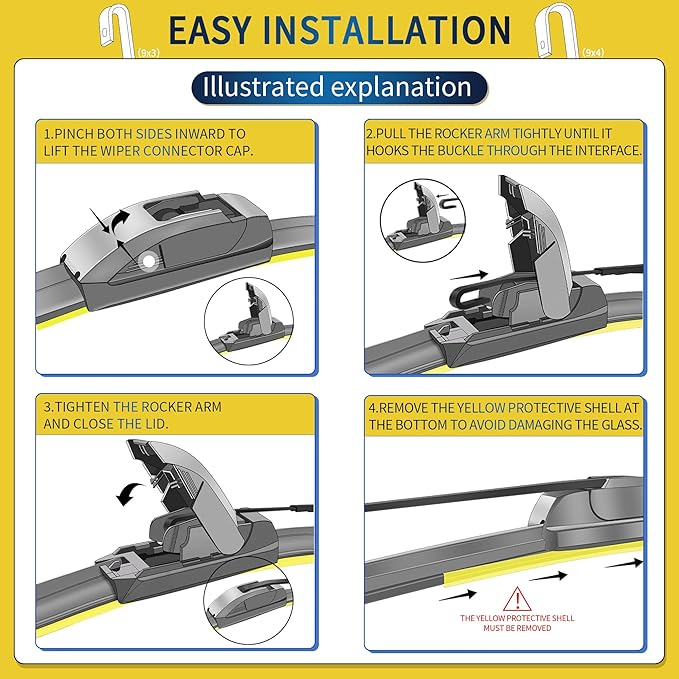 - 【SUPERIOR PERFORMANCE】: The wiper has a frameless design to prevent snow and ice buildup, ensuring trouble-free installation and excellent performance.