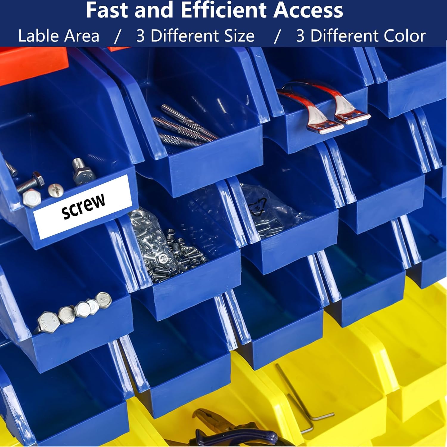 - Easy Access Label: Each bin in the parts bin rack system features a label area, enabling you to clearly identify and locate items. This saves you time to find small goods.
