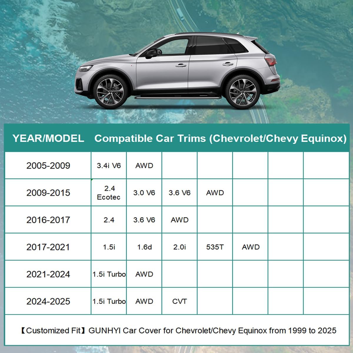 - 【Compatible with】This Full Car Cover Custom fit for Chevrolet Equinox from 2005 to 2025. Comes with a microfiber towel that you can use to clean your car, because if there is sand on the surface of the car before use, it may damage the paint.