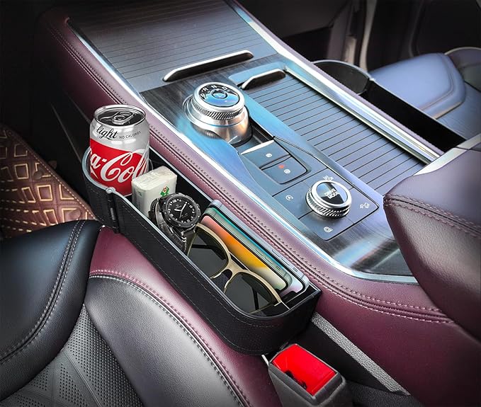 - 4.【Size】This seat slot filler organizer Not suitable for car seat gaps wider than 0.78 inches(2 cm) and central console lower than the seat. The size of the car seat gap organizer is 10.23 x 6.49 x 2.95 inches which is suitable for most vehicles. Expandable cup holders can hold cups ranging from 2.3 to 3.9 inches. Please measure the distance between your seat and the console carefully before you purchase.