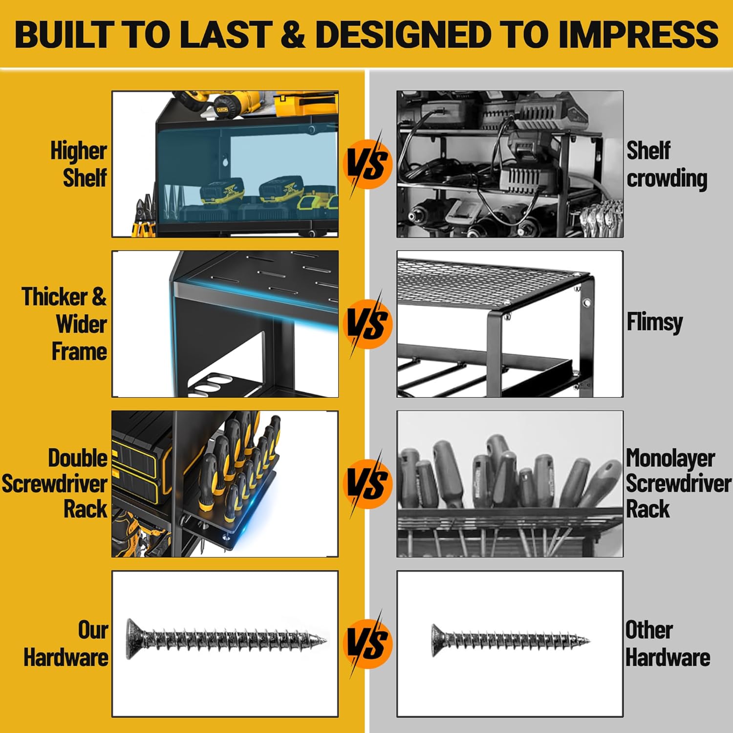 - 【PROFESSIONAL TOOL STORAGE SOLUTION】: YYR cordless tool organizer with charging station take advantage of wasted wall space and keep all of your power & hand tools in one central location so you can easily find them and never waste time searching for them again!
