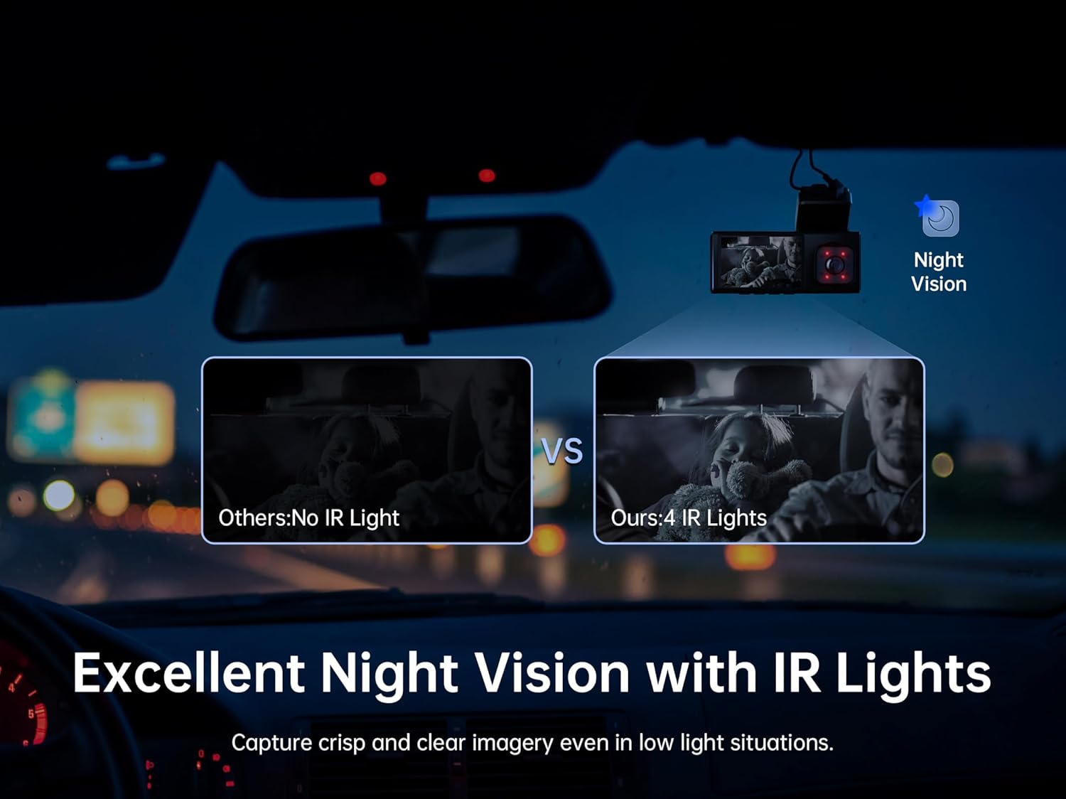 - [Enhanced Dashcam with Night Vision & WDR]: The front camera of the pelsee dash cam has 4 IR lights, with infrared night vision function, which can automatically enter the day and night mode, ensuring visibility is always clear. The WDR feature maintains excellent exposure balance in bright or dark lighting conditions, ensure that every frame of the picture is rich in detail and high quality.