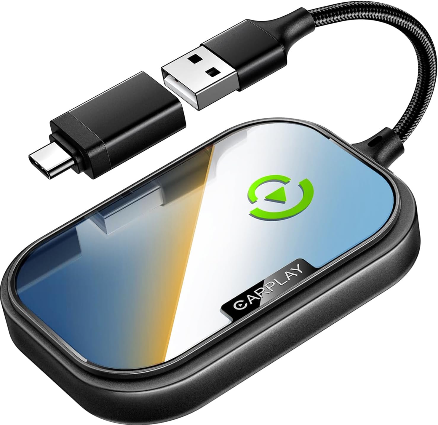 - Universal Compatibility: CarPlay wireless adapter is works with over 800 car models. Designed for vehicles equipped with wired Apple CarPlay systems and with USB and USB-C ports, it includes a USB to USB-C adapter and supports iPhone 6 and later, running iOS 10 or higher.