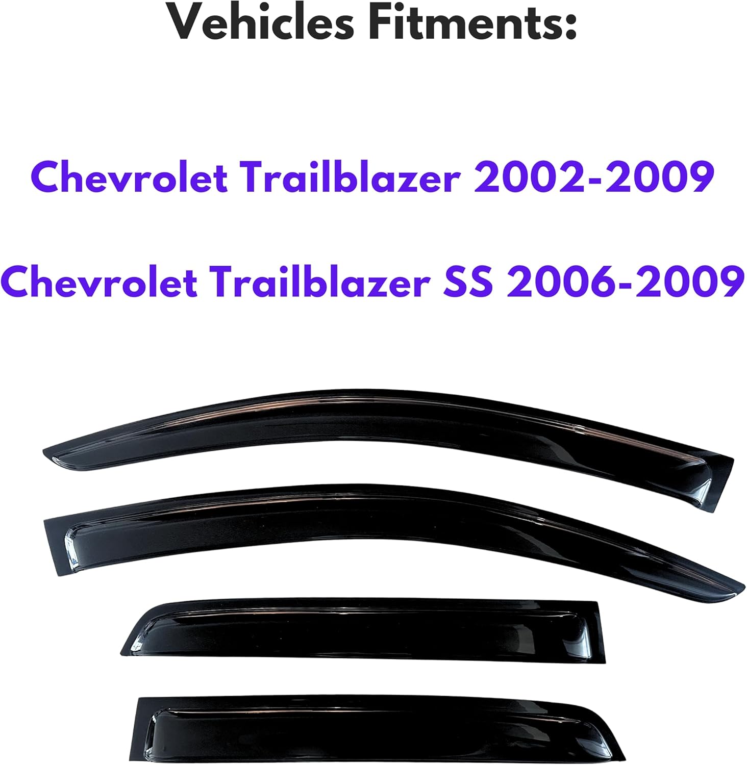 - 【Perfect Fit】KPY window visors rain guards vent deflectors compatible with Chevrolet/Chevy Trailblazer 2002 2003 2004 2005 2006 2007 2008 2009 & Trailblazer SS 2006 2007 2008 2009