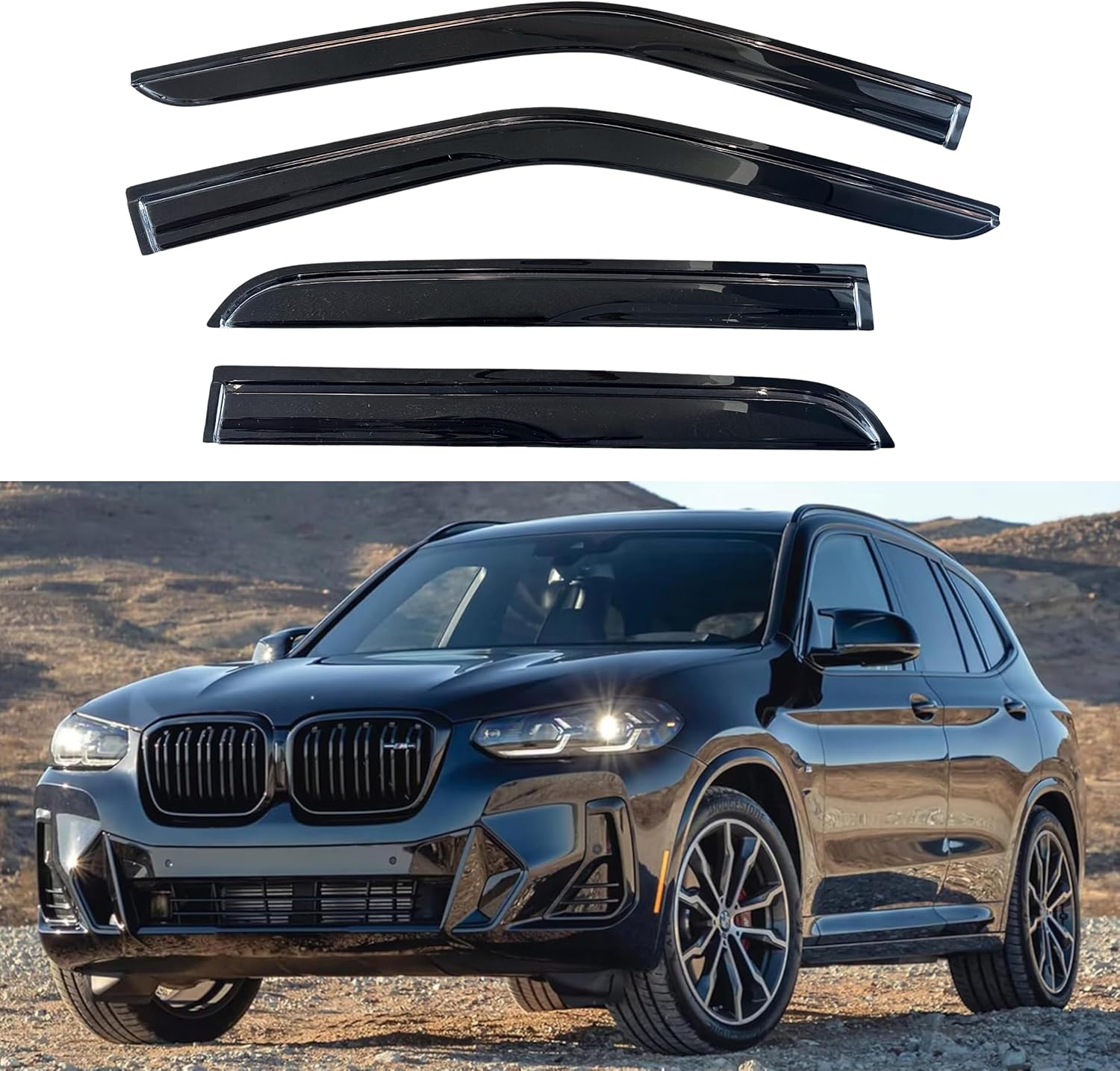- 【Perfect Fit】KPY window visors rain guards vent deflectors compatible with BMW X3 G01 2018 2019 2020 2021 2022 2023 (Mugen Style)