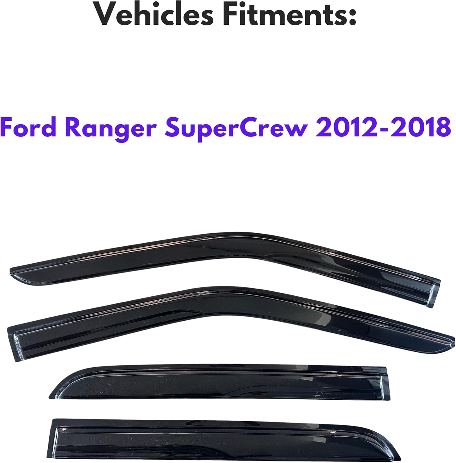 - 【Perfect Fit】KPY window visors rain guards vent deflectors compatible with Ford Ranger SuperCrew 2012 2013 2014 2015 2016 2017 2018 (Mugen Style)