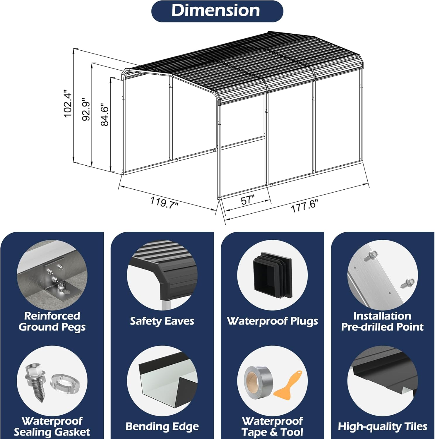- 【Unique Galvanized Frame】The metal carport features a fully galvanized frame, giving it a distinctive silver appearance. Galvanized frames offer superior resistance to corrosion and provide a stronger surface, eliminating concerns about peeling or scratching common with powder-coated frames