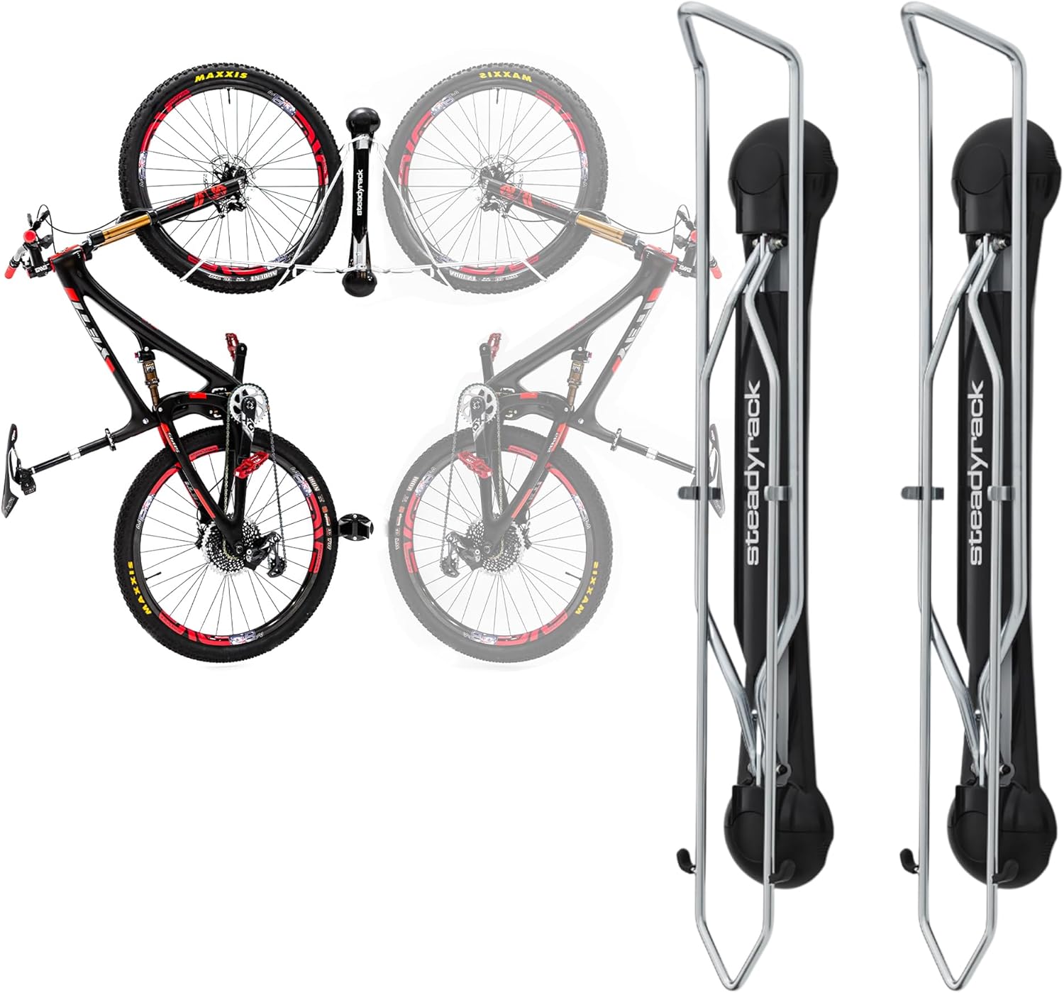 Steadyrack Bike Rack for Mountain Bikes - The Original Wall Mounted Vertical Bike Storage - Fits Wide Tires - Space Saving Pivot Design - Heavy-Duty Steel Rack for Indoor Garage, Apartment or Home Use