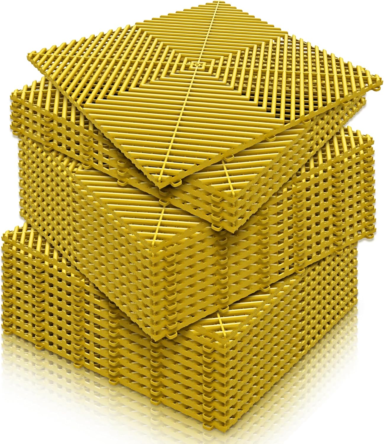 15.7"x15.7" Garage Flooring Tiles, Non-Slip Interlocking Plastic Garage Floor Mat, Garage Organization & Garage Storage, Vented Pattern (Yellow, 25PCS)
