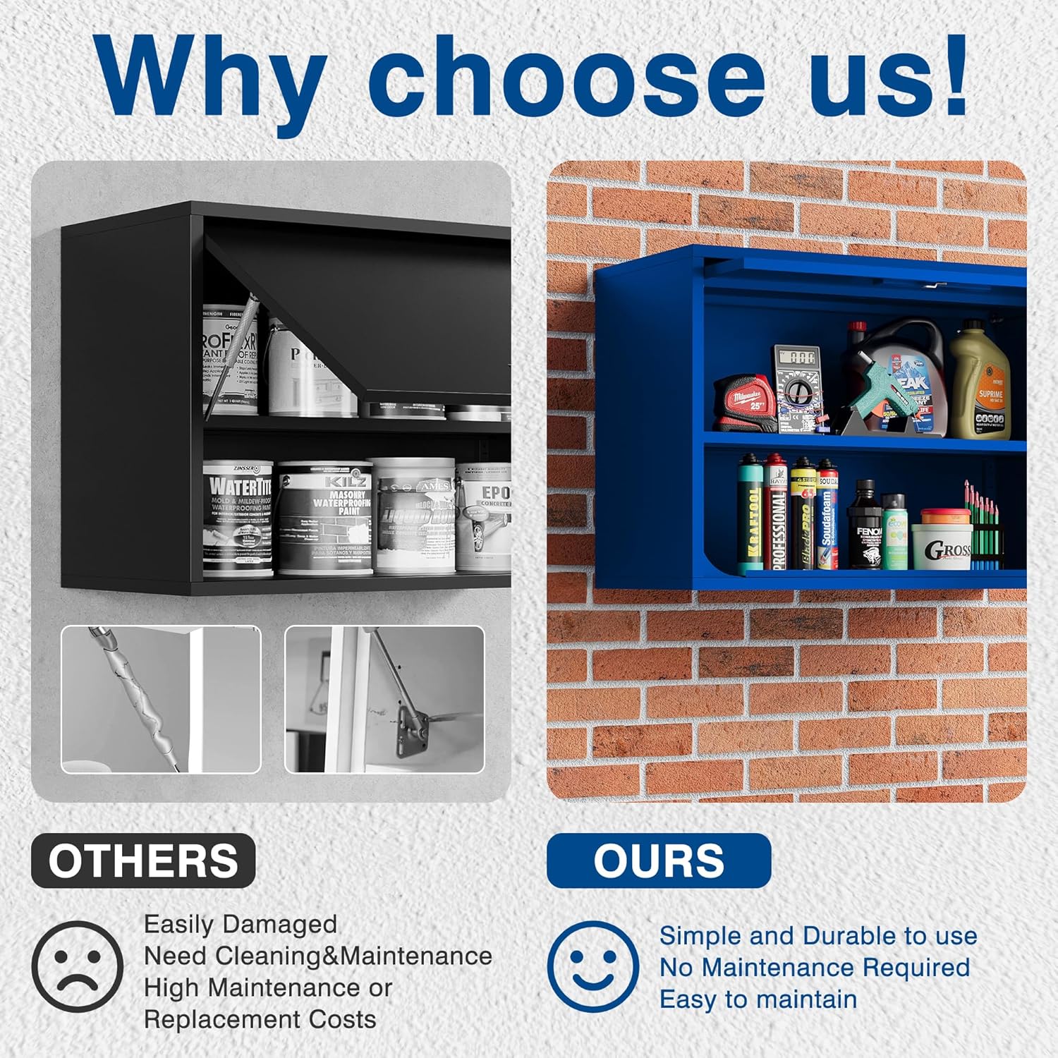 - High-quality - Our metal wall cabinet is crafted from 0.6mm thick SPCC steel plate, which compared to inexpensive wooden and plastic wall cabinets, can withstand significantly more weight. Each shelf can bear up to 120 pounds. It is the optimal choice for maximizing your storage space.