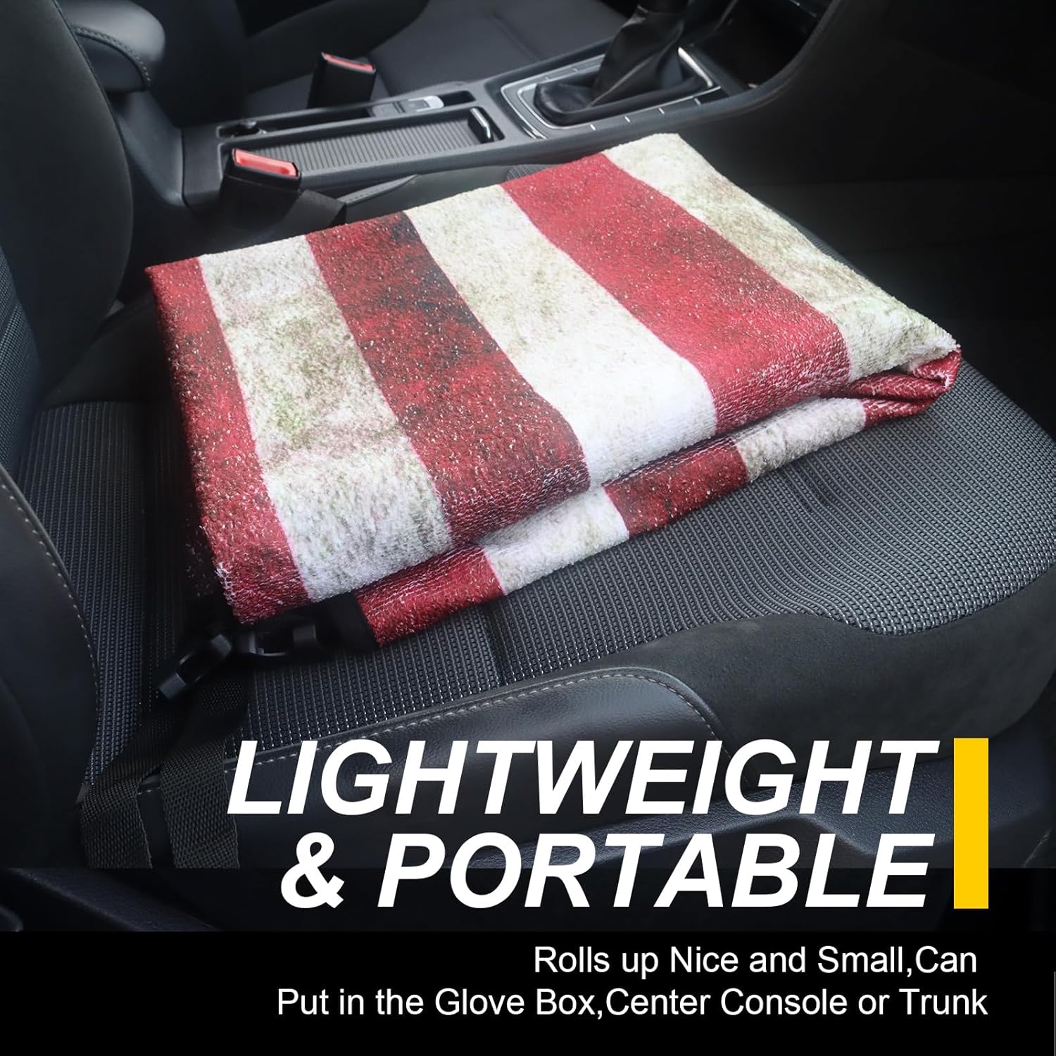- Made From 3 Layer Material: (Front) American flag pattern printed on towel cloth, which gives the rear seat cover a good look and a super long life. It is perfect for leather or upholstery back seats. (Middle) Waterproof fabric that is designed to guard your backseat against moisture and sweat. (Back) This rear seat cover are designed with a non-slip backing fabric that's super comfortable and won't slip off your back seat.
