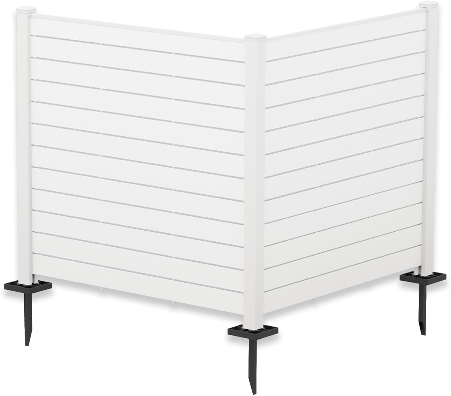- π‘ Dimensions: The Kozyard W50*H48*D50 inches Privacy Fence Set includes 3 vinyl panels. The 11-inch galvanized steel stakes are easily inserted into the ground to provide a firm base for the panels, reducing direct damage from heavy rain or storms, enhancing aesthetics, and boosting durability.