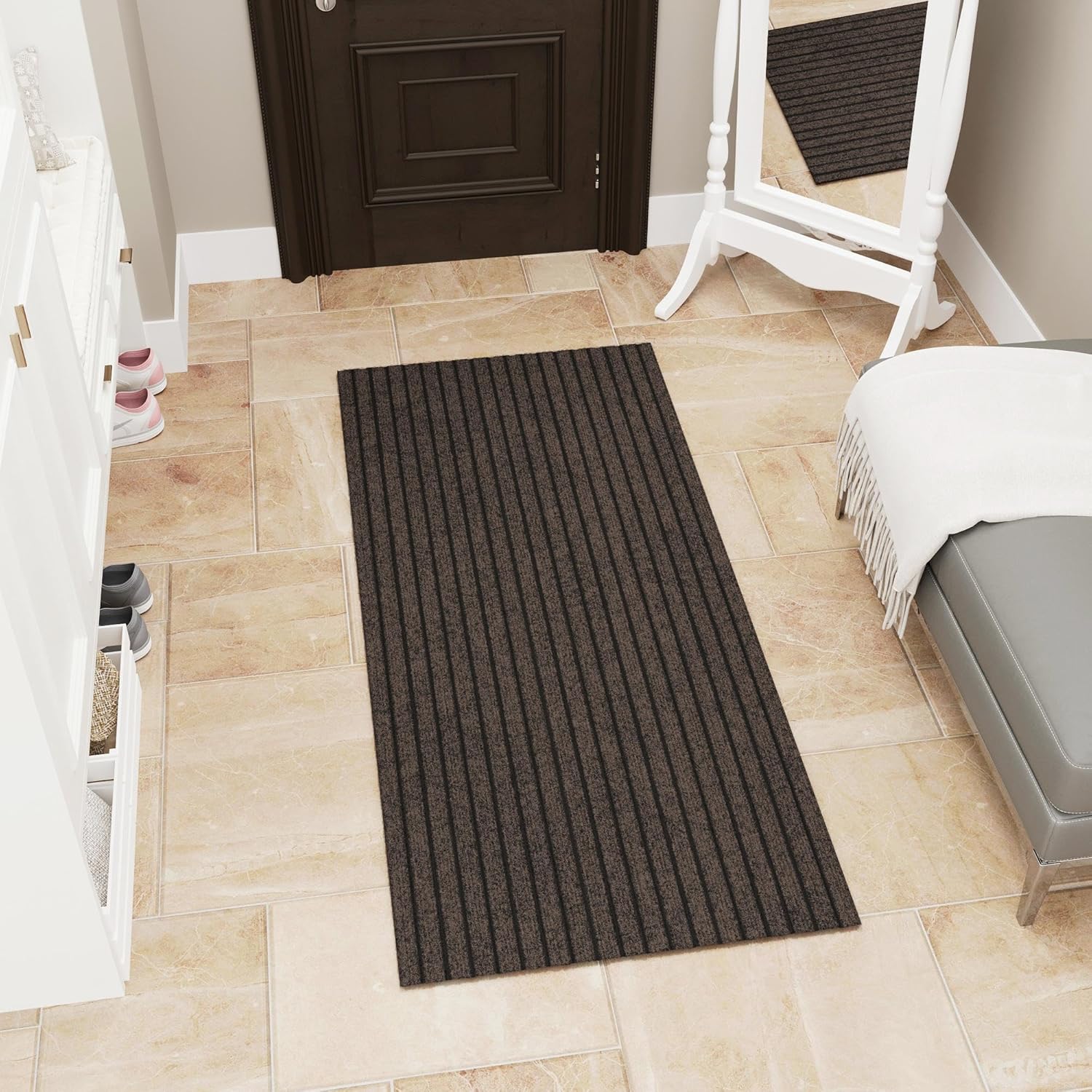Ottomanson Mud Mat 2' x 2'7" Entryway Rug - Non-Slip Scraper Doormat for Muddy Paws, Dirt Trapping Indoor/Outdoor Mat for High-Traffic Areas, Kitchen, Garage, Patio, Brown