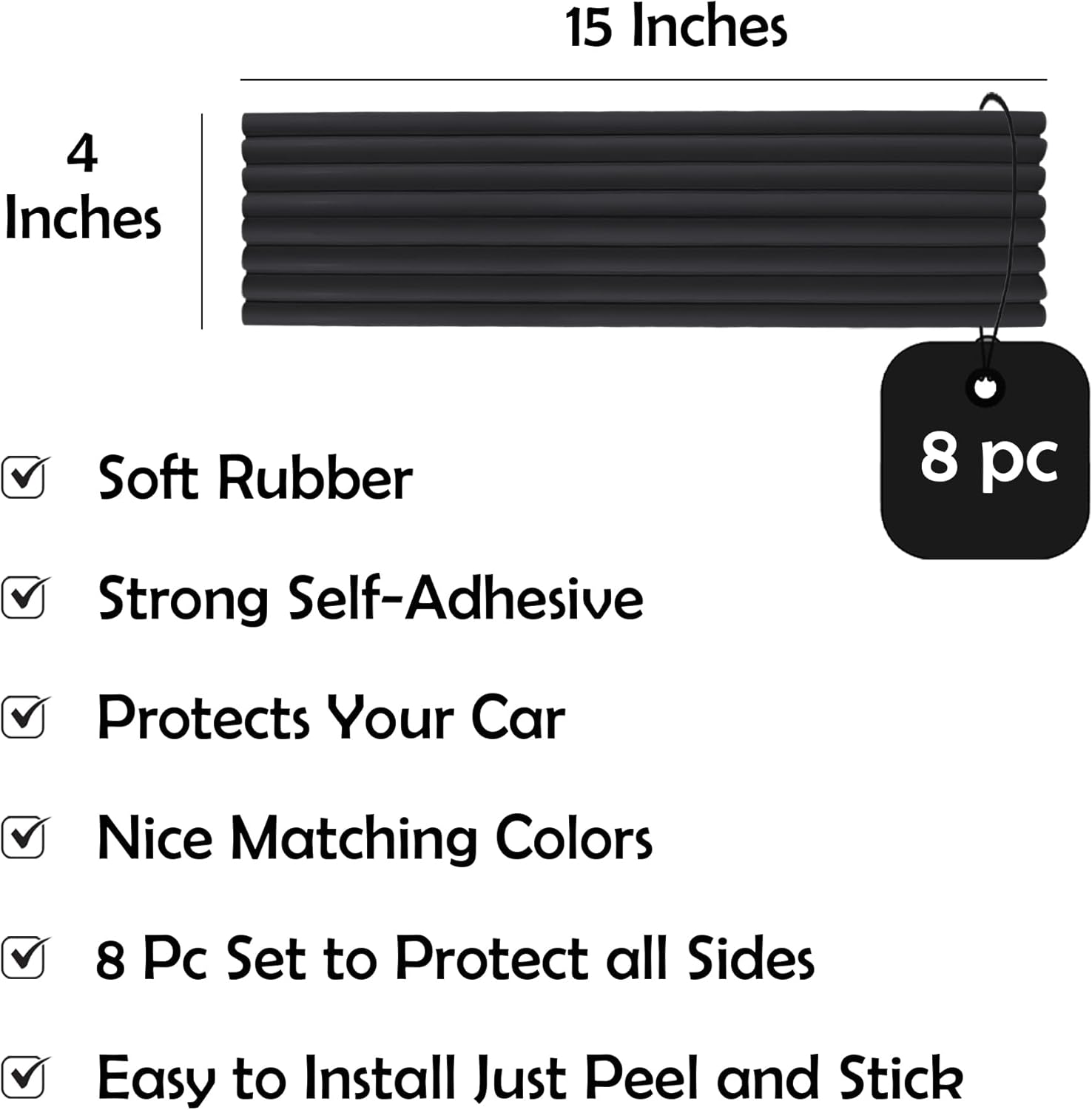 RUBBER BOND Garage Wall Protectors 8 Pack - 4x15 Inches Strong Self-Adhesive Rubber Bumper Protectors for Garage Walls - Anti-Scratch and Waterproof (Black)