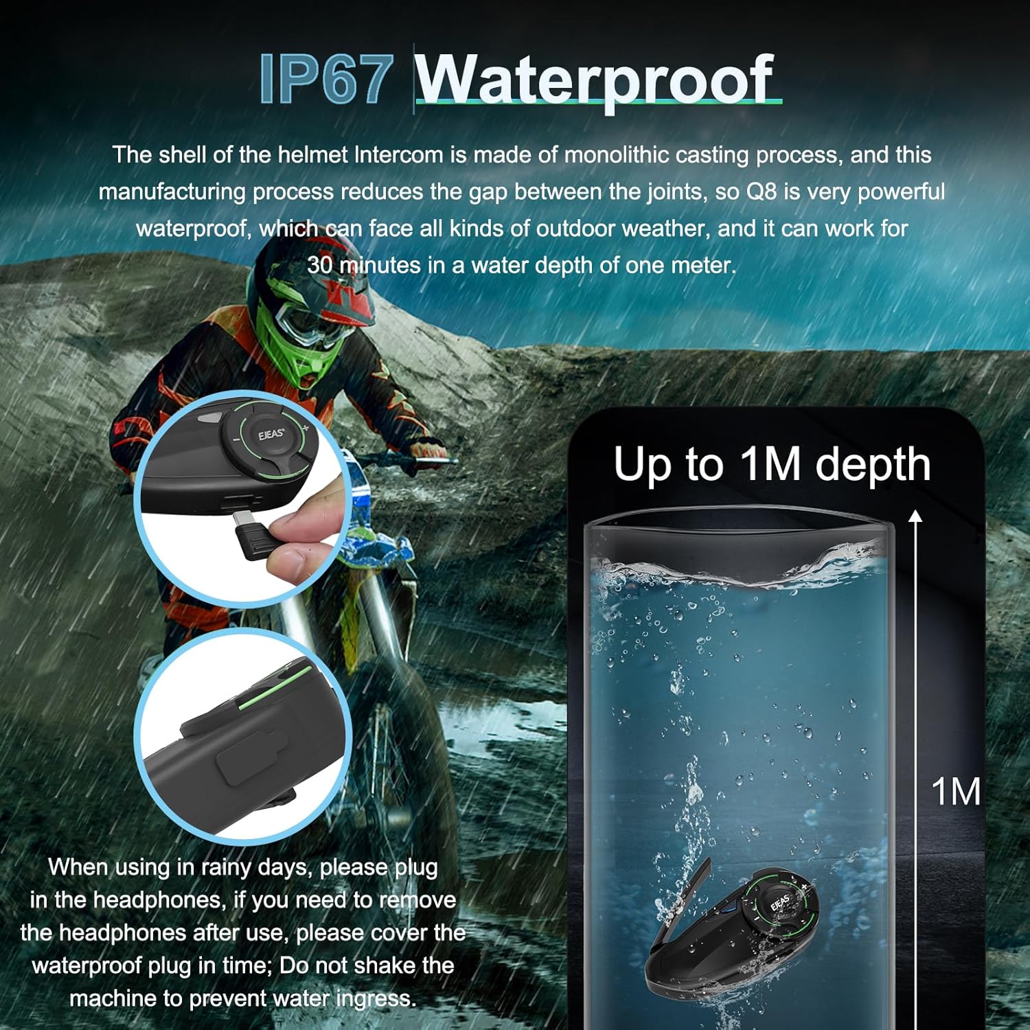 - ๐๐ง๐ค๐๐๐จ๐จ๐๐ค๐ฃ๐๐ก waterproof, dustproof, windproof, and noise reducing-the speaker emits high -quality stereo sound, and can communicate clearly even at speeds of 140 yards per hour and 80 miles/h. Equipped with IP67 waterproof rating, it is not afraid of rainy days and can even work for 3 hours underwater for one meter. Provide communication guarantee for your professional cycling events