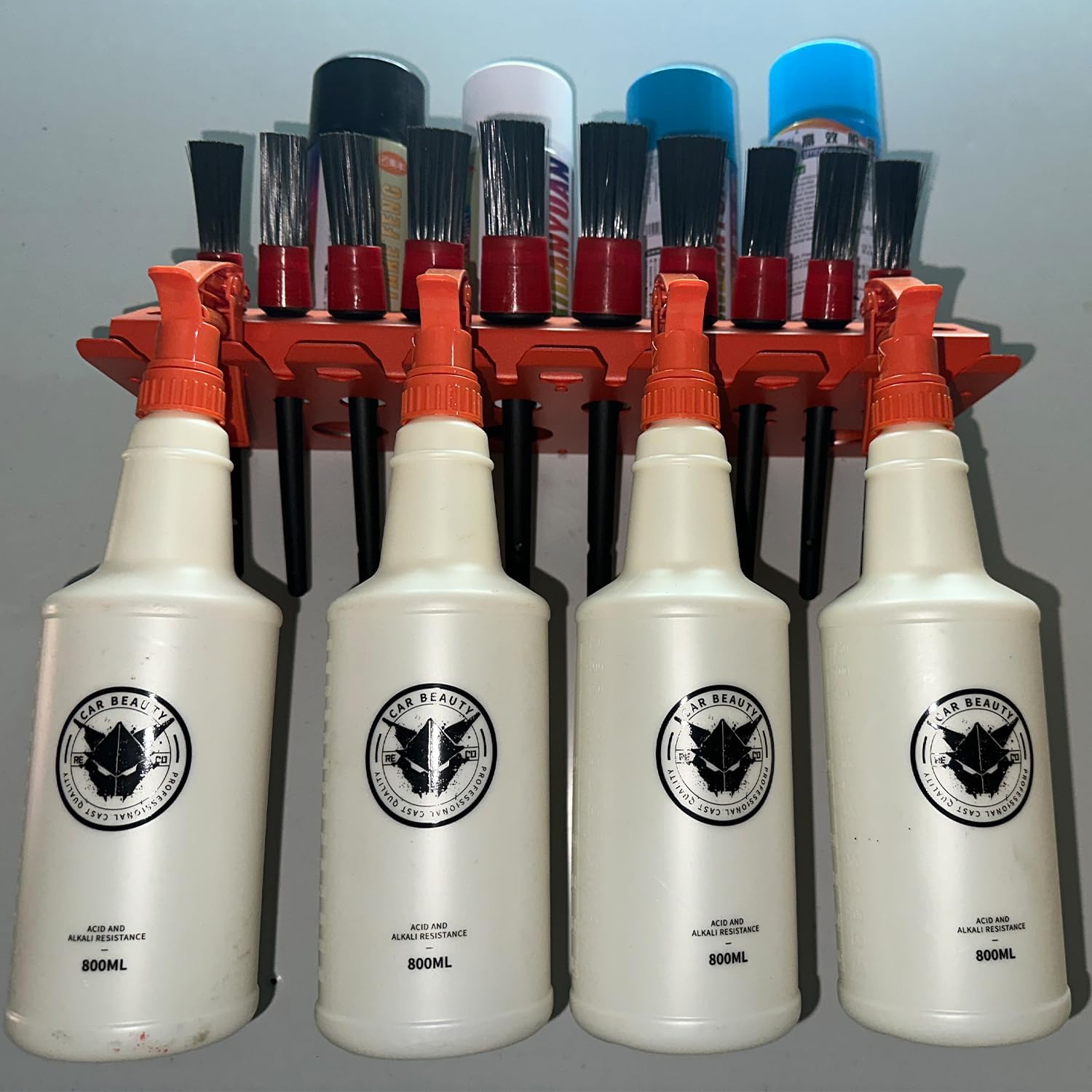 Bottle Storage Rack, Detailing Brush Organizer, Spray Bottle Storage Rack, 3/8" Air Tool Holder, for Garage and Workspace (1pc-Orange)