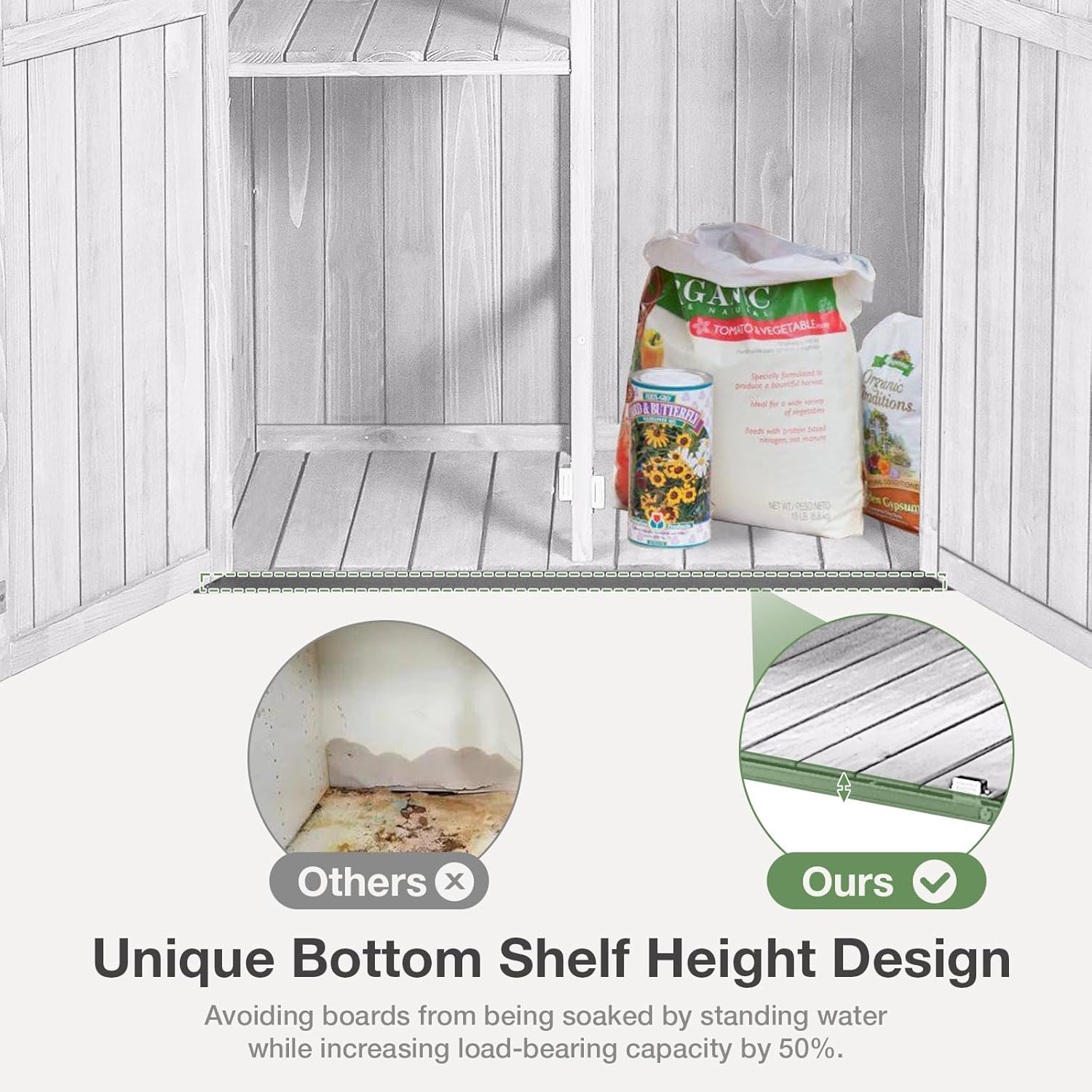 - 🛖【Stable Construction】: Our outdoor garden sheds are made of natural fir wood and metal brackets that are more than three times as stable as other products, ensuring they withstand various weather conditions for long-lasting durability