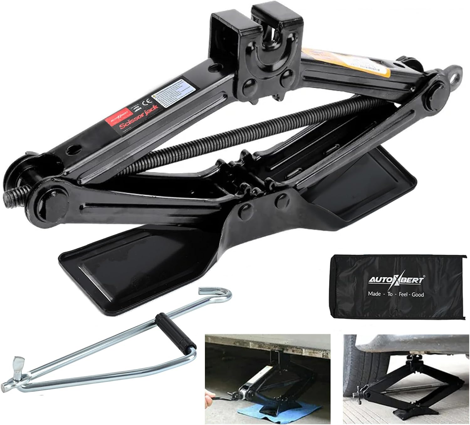 - 5.[Portable Car Jack Kit]: 1x 2T heavy duty scissors jack; 1x hand crank; This complete 2 ton Scissor Jack Car Tire Change Set can handle any emergency tire replacement job and fits perfectly in your cars