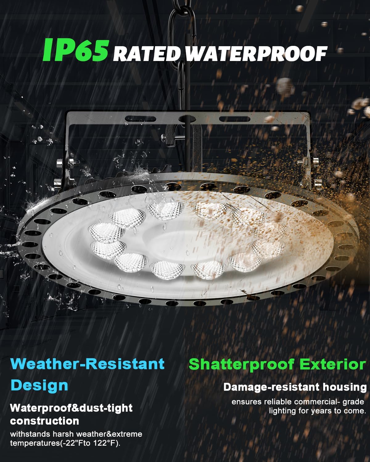 - 【Super Waterproof & Eye Friendly 5000K】- Our ufo lights led is well designed stylish and unique, featuring IP65 certified water resistant and dustproof, suitable for damp places or other harsh environments. The color temperature of the high bay led light is 5000K, and the CRI is over 80, universally known as closest to daylight. Bring you unbeatable lighting experience.
